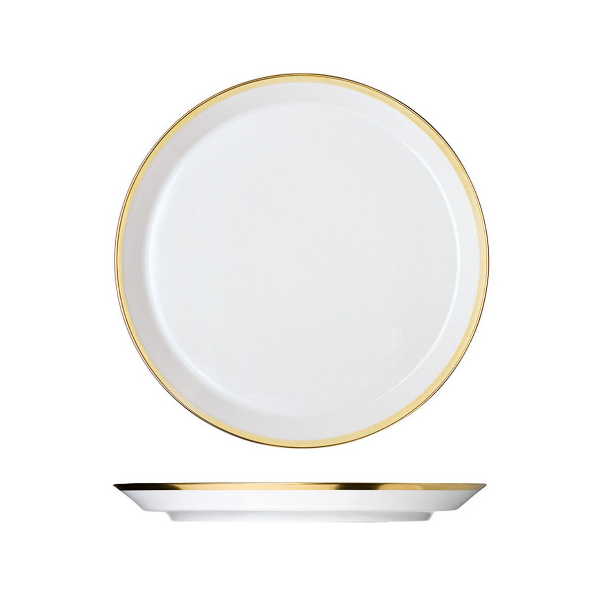Ein weiteres reizvolles Detail ist die Tatsache, dass die Vergoldung bei vielen Teilen um die jeweiligen Kanten herumläuft. So findet sich beispielsweise auf dem Pastateller ein mittig platzierter Streifen, der auch auf der Unterseite weitergeführt wird. Das ist Luxus bis ins kleinste Detail.