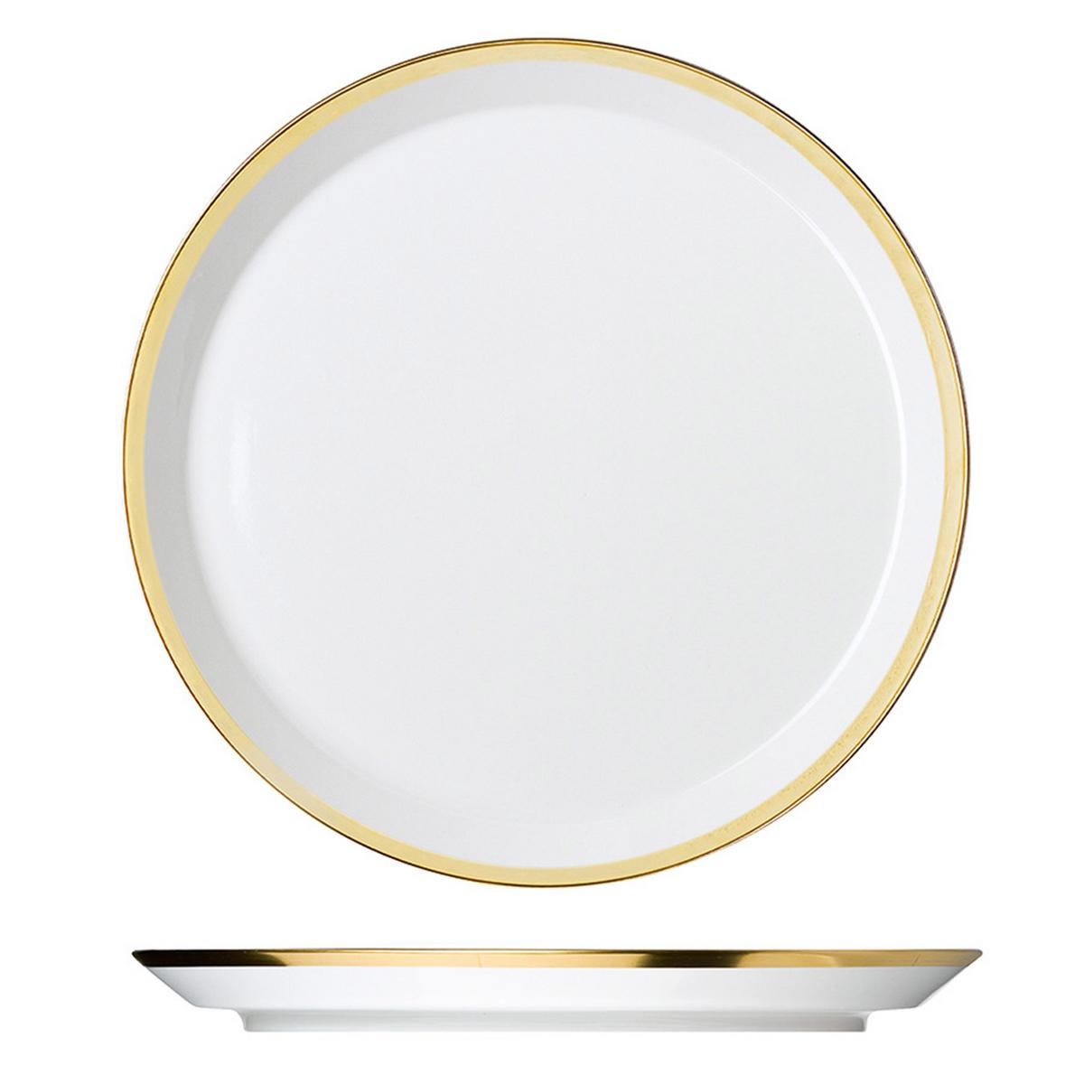 Ein weiteres reizvolles Detail ist die Tatsache, dass die Vergoldung bei vielen Teilen um die jeweiligen Kanten herumläuft. So findet sich beispielsweise auf dem Pastateller ein mittig platzierter Streifen, der auch auf der Unterseite weitergeführt wird. Das ist Luxus bis ins kleinste Detail.