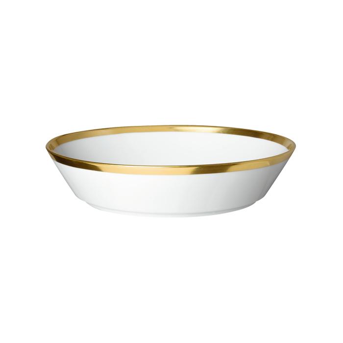 Das pure Gold steigert die luxuriöse Ausstrahlung des strahlend weißen Porzellans und lässt es in einer noch nie gekannten Reinheit erscheinen. Dabei hat jedes Teil des Services ein anderes Gesicht: Mal in spiegelnder Flächigkeit, mal als zarter Rand aufgetragen, unterstreicht das Dekor den Charakter und die Form der jeweiligen Teile.