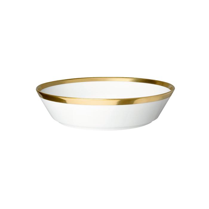 Ein weiteres reizvolles Detail ist die Tatsache, dass die Vergoldung bei vielen Teilen um die jeweiligen Kanten herumläuft. So findet sich beispielsweise auf dem Pastateller ein mittig platzierter Streifen, der auch auf der Unterseite weitergeführt wird. Das ist Luxus bis ins kleinste Detail.