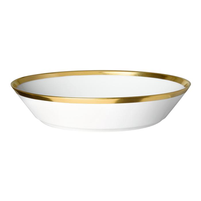 Ein weiteres reizvolles Detail ist die Tatsache, dass die Vergoldung bei vielen Teilen um die jeweiligen Kanten herumläuft. So findet sich beispielsweise auf dem Pastateller ein mittig platzierter Streifen, der auch auf der Unterseite weitergeführt wird. Das ist Luxus bis ins kleinste Detail.
