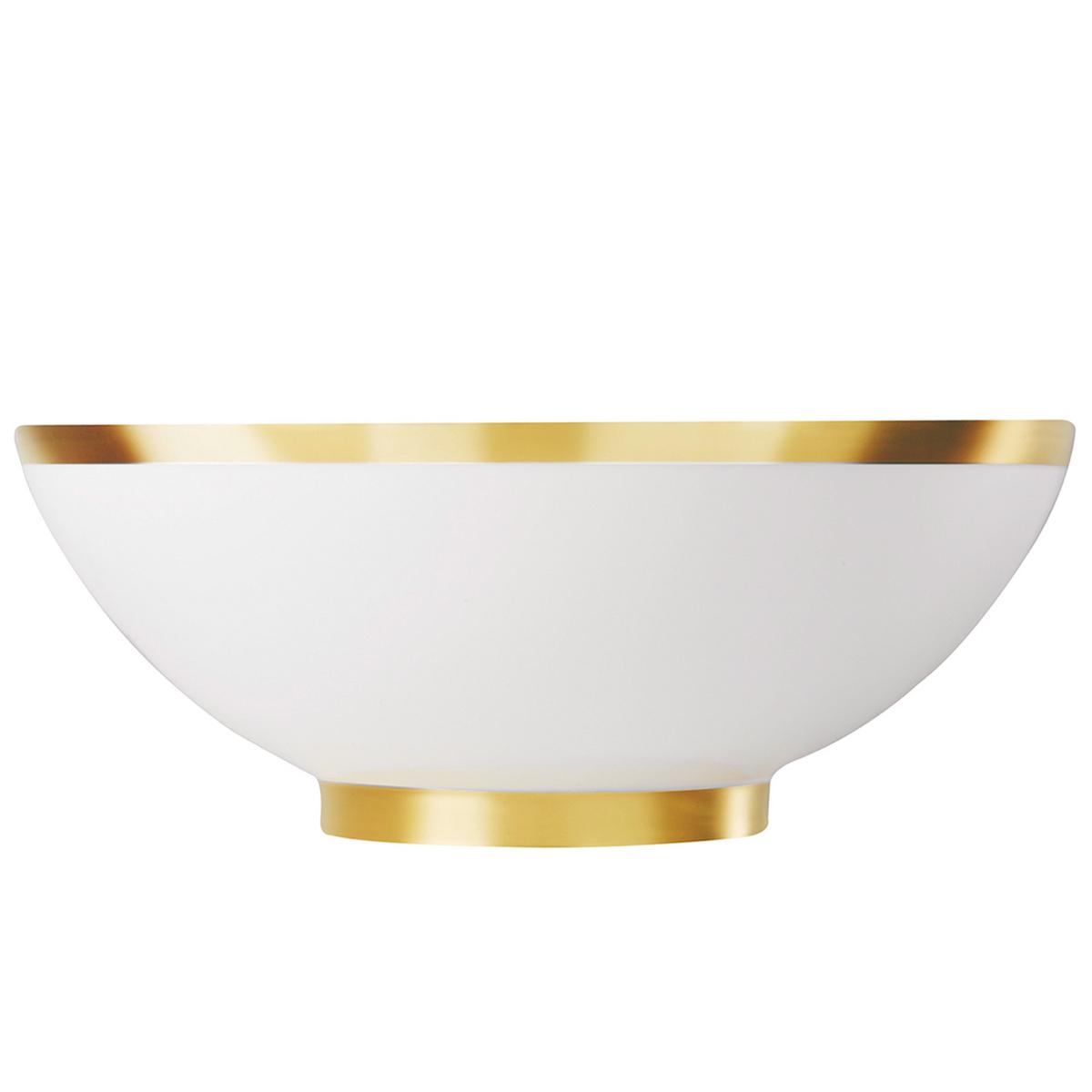 Das pure Gold steigert die luxuriöse Ausstrahlung des strahlend weißen Porzellans und lässt es in einer noch nie gekannten Reinheit erscheinen. Dabei hat jedes Teil des Services ein anderes Gesicht: Mal in spiegelnder Flächigkeit, mal als zarter Rand aufgetragen, unterstreicht das Dekor den Charakter und die Form der jeweiligen Teile.