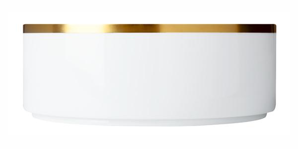 Das pure Gold steigert die luxuriöse Ausstrahlung des strahlend weißen Porzellans und lässt es in einer noch nie gekannten Reinheit erscheinen. Dabei hat jedes Teil des Services ein anderes Gesicht: Mal in spiegelnder Flächigkeit, mal als zarter Rand aufgetragen, unterstreicht das Dekor den Charakter und die Form der jeweiligen Teile.