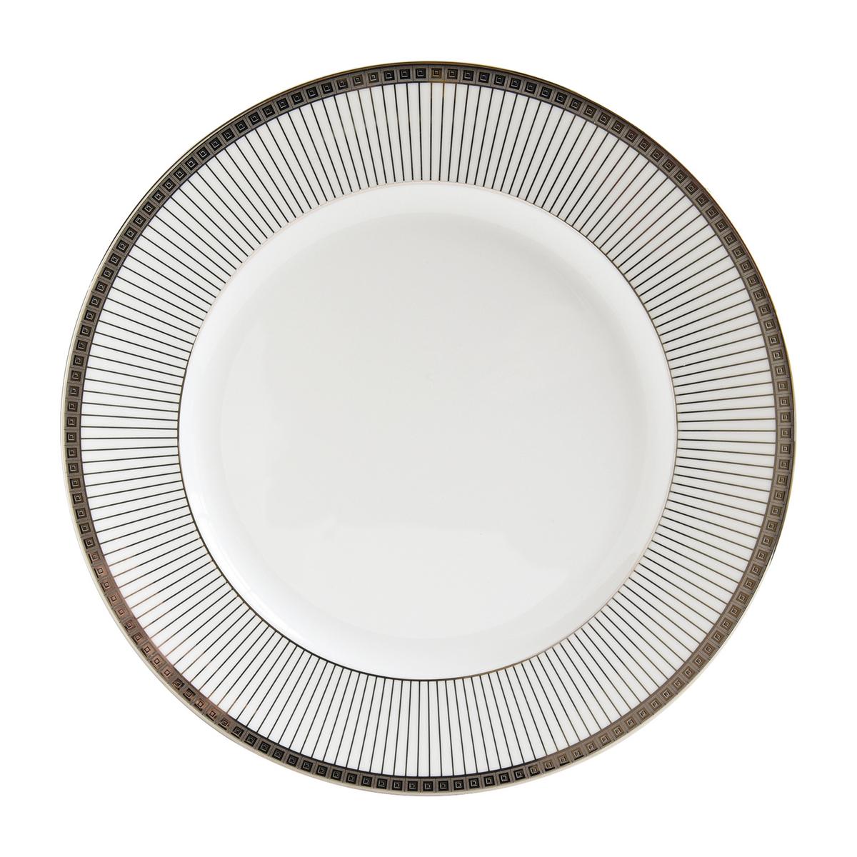 "Athena Platin" von Bernardaud ist ein Porzellanservice aus wunderschönem weißem Limoges-Porzellan mit einer Platinveredelung am Rand der Teller. Die feine Platinveredelung besteht aus einem graphischen Motiv in Form von unterschiedlich großen Quadraten. Die Platinauflage von "Athena Platin" ist besonders filigran und spielt mit matten und glänzenden Elementen. "Athena Studio" ergänzt die Kollektion und verbindet elegante Streifen mit Quadraten.