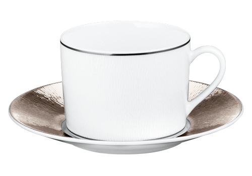 "Dune" Teetasse, Tasse weiß und Unterteller mit platinfarbener Fahne von Bernardaud