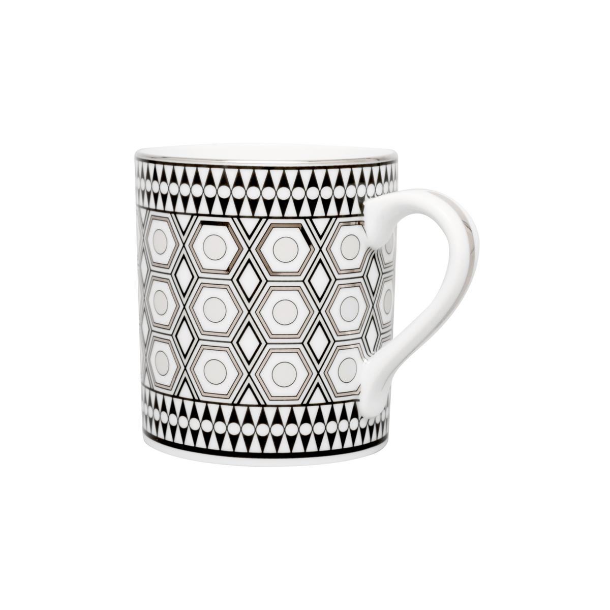Die geometrischen Muster sorgen für eine moderne Anmutung, wohingegen die Platinveredelung und das Spiel mit Grautönen klassische Eleganz austrahlen.