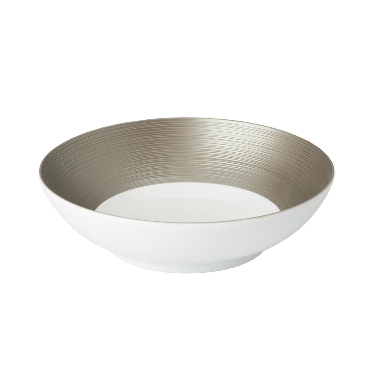"Hémisphère" ist das Aushängeschild der exklusiven Porzellanmanufaktur J.L Coquet. Das Tafelservice "Hémisphère Grau-Metallic" wird in reiner Handarbeit aus feinstem Limoges Porzellan hergestellt. Markenzeichen der Hémisphère Serie sind die extrabreiten, zart strukturierten Ränder. Die feine Oberflächenstruktur ist auch gut zu ertasten. Mindestens 15 unterschiedliche Arbeitsschritte sind nötig, um ein Einzelteil aus der Serie "Hémisphère Grau-Metallic" von JL Coquet herzustellen.