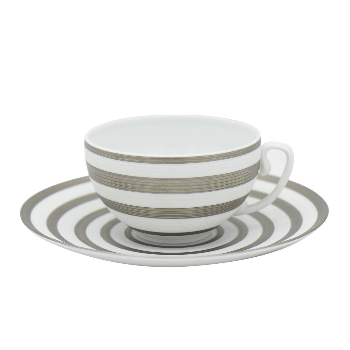 "Hémisphère gestreift, Platin" Frühstückstasse mit Unterteller von J.L Coquet
