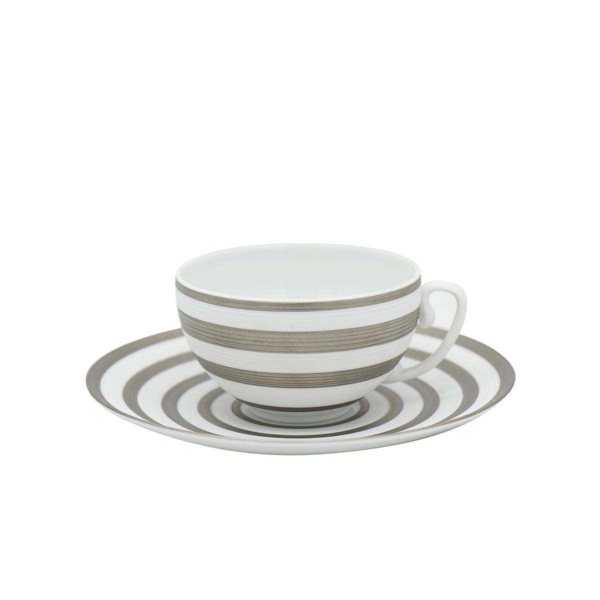 "Hémisphère gestreift, Platin" Teetasse mit Unterteller von J.L Coquet