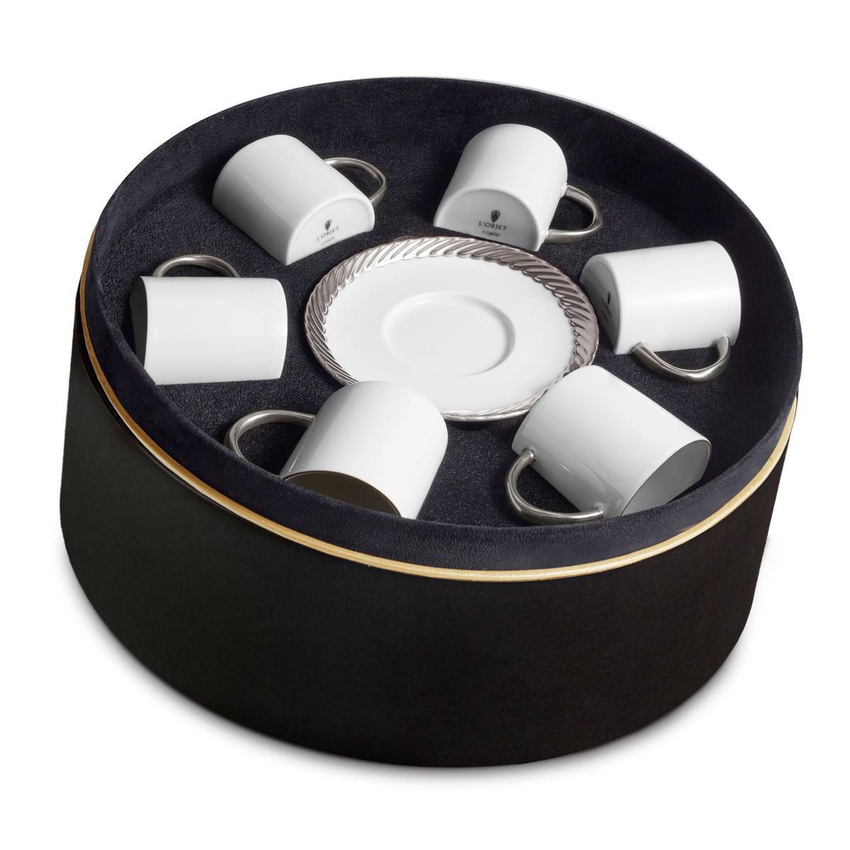 Das mit Platin veredelte Tafelservice "Corde Platinum" von L'Objet wird der gedeckten Tafel einen Hauch von Extravaganz verleihen.