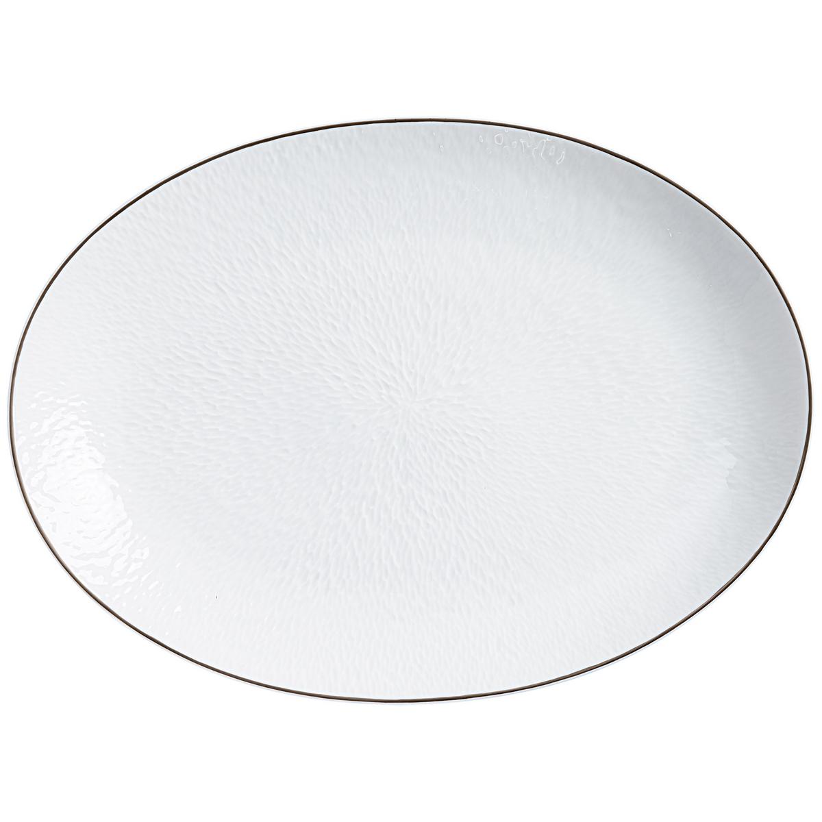 Nicht nur die Formen-Vielfalt – von rund über spindel- bis hin zu sternenförmig – auch das Spiel der Oberflächen verführt die Sinne. Körnige Strukturen vereinen sich mit glatten und glänzenden Flächen zu einem harmonischen Ganzen. Geadelt wir das pure Weiß des Raynaud Limoges-Porzellans mit platinveredelten Rändern, Tellerfahnen und Innenseiten.