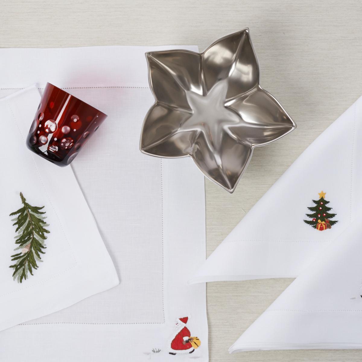 Nicht nur die Formen-Vielfalt – von rund über spindel- bis hin zu sternenförmig – auch das Spiel der Oberflächen verführt die Sinne. Körnige Strukturen vereinen sich mit glatten und glänzenden Flächen zu einem harmonischen Ganzen. Geadelt wir das pure Weiß des Raynaud Limoges-Porzellans mit platinveredelten Rändern, Tellerfahnen und Innenseiten.