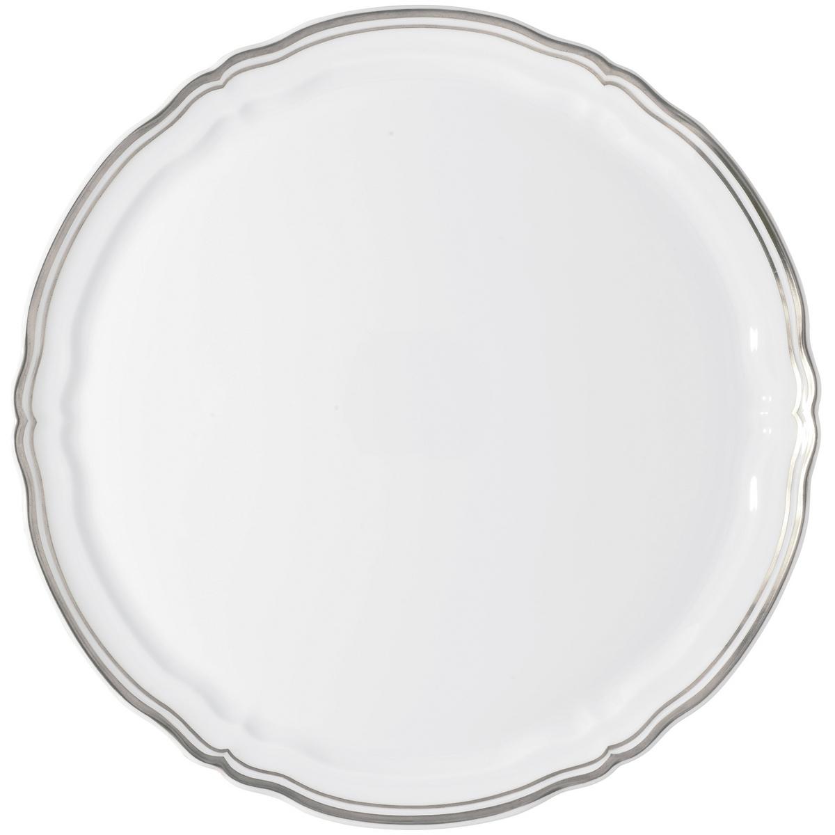 Das Tafelservice "Polka Platin" von Raynaud glänzt im berühmten Weiß des Limoges-Porzellans mit silberner Veredelung an den Rändern. Das weiße Service ist mit einem doppelten handgemalten Rand in Platin eingerahmt. "Polka Platin" ist ein Klassiker von Raynaud und lässt sich wunderbar mit anderen Raynaud Servicen mischen bzw. erweitern.