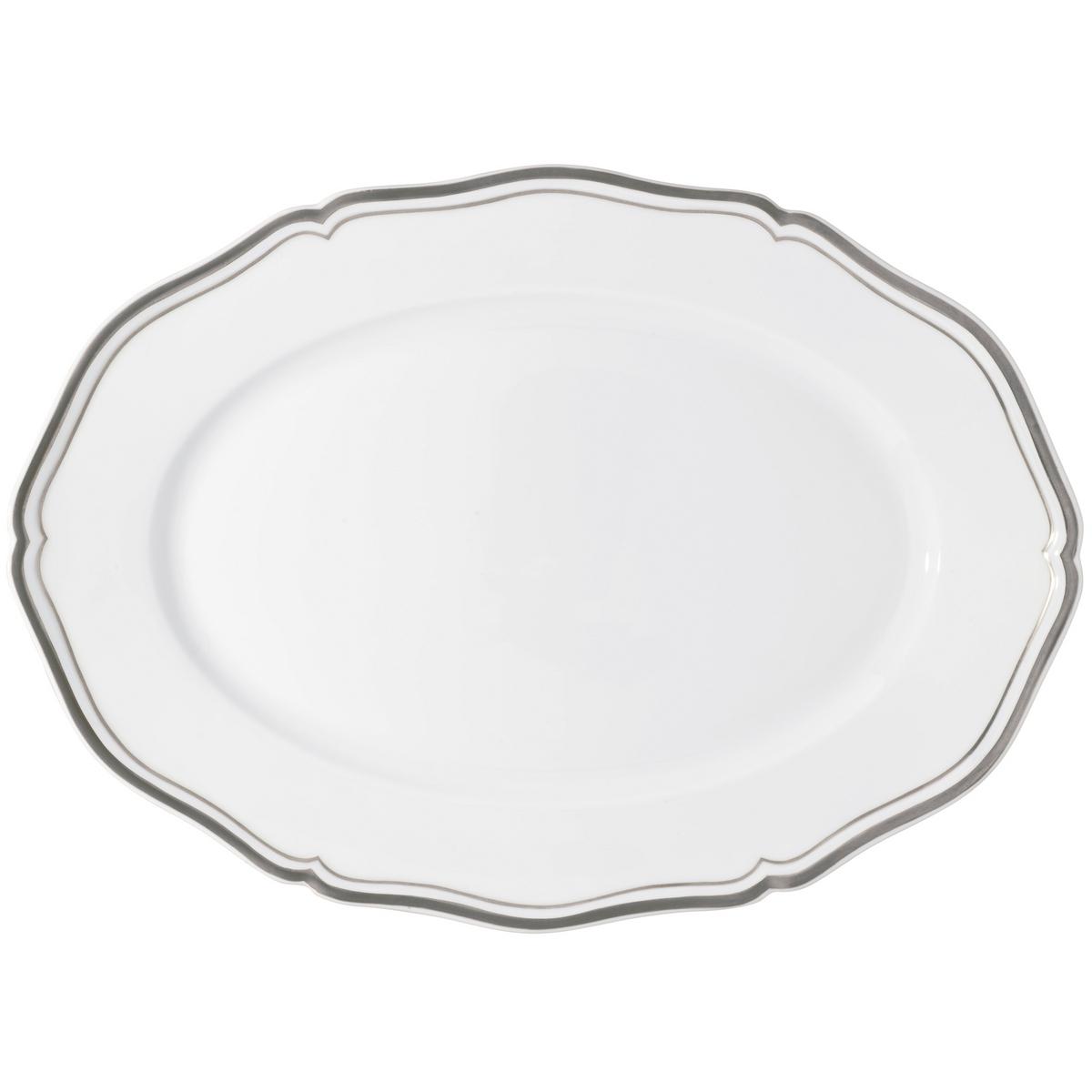 Das Tafelservice "Polka Platin" von Raynaud glänzt im berühmten Weiß des Limoges-Porzellans mit silberner Veredelung an den Rändern. Das weiße Service ist mit einem doppelten handgemalten Rand in Platin eingerahmt. "Polka Platin" ist ein Klassiker von Raynaud und lässt sich wunderbar mit anderen Raynaud Servicen mischen bzw. erweitern.