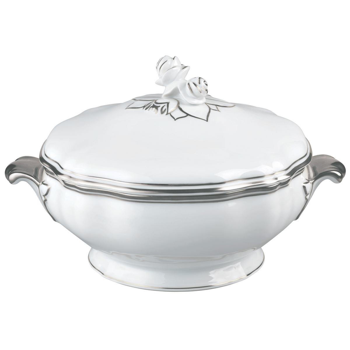Das Tafelservice "Polka Platin" von Raynaud glänzt im berühmten Weiß des Limoges-Porzellans mit silberner Veredelung an den Rändern. Das weiße Service ist mit einem doppelten handgemalten Rand in Platin eingerahmt. "Polka Platin" ist ein Klassiker von Raynaud und lässt sich wunderbar mit anderen Raynaud Servicen mischen bzw. erweitern.