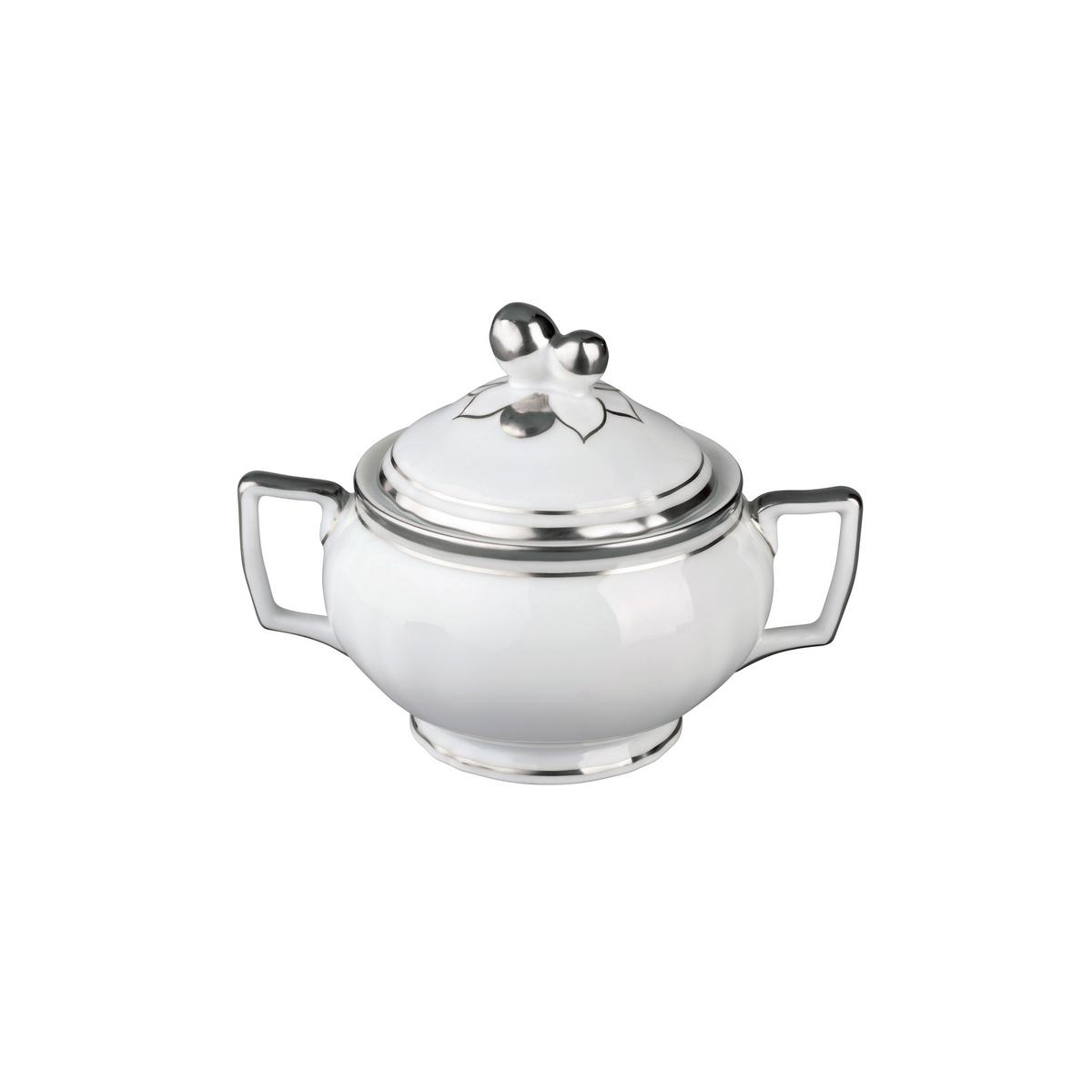 Das Tafelservice "Polka Platin" von Raynaud glänzt im berühmten Weiß des Limoges-Porzellans mit silberner Veredelung an den Rändern. Das weiße Service ist mit einem doppelten handgemalten Rand in Platin eingerahmt. "Polka Platin" ist ein Klassiker von Raynaud und lässt sich wunderbar mit anderen Raynaud Servicen mischen bzw. erweitern.