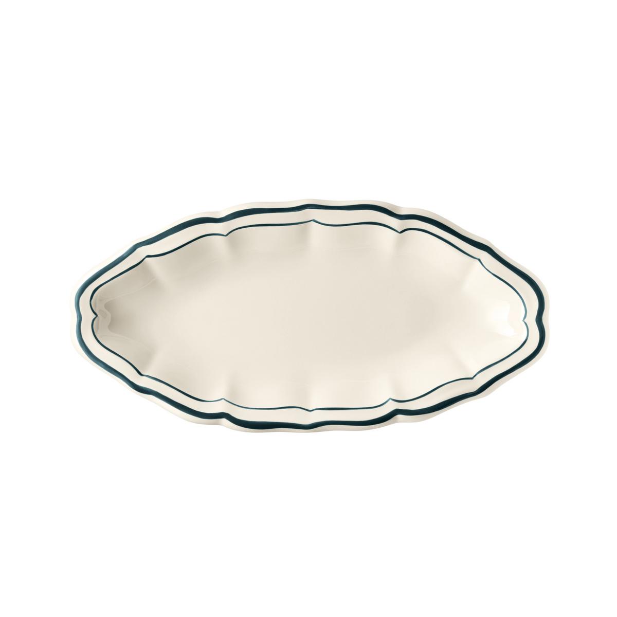Mit "Filets Acapulco" präsentiert Gien eine neue Farbvariante seiner berühmten Fayencen "Filets Bleu". Das Gien "Filets Acapulco" besticht – wie alle Service der Serie – mit seiner elegant geschwungen Muschelform aus ecrufarbener Fayence, die ein von Hand aufgetragener Rand in einem intensiven Petrolton unterstreicht.