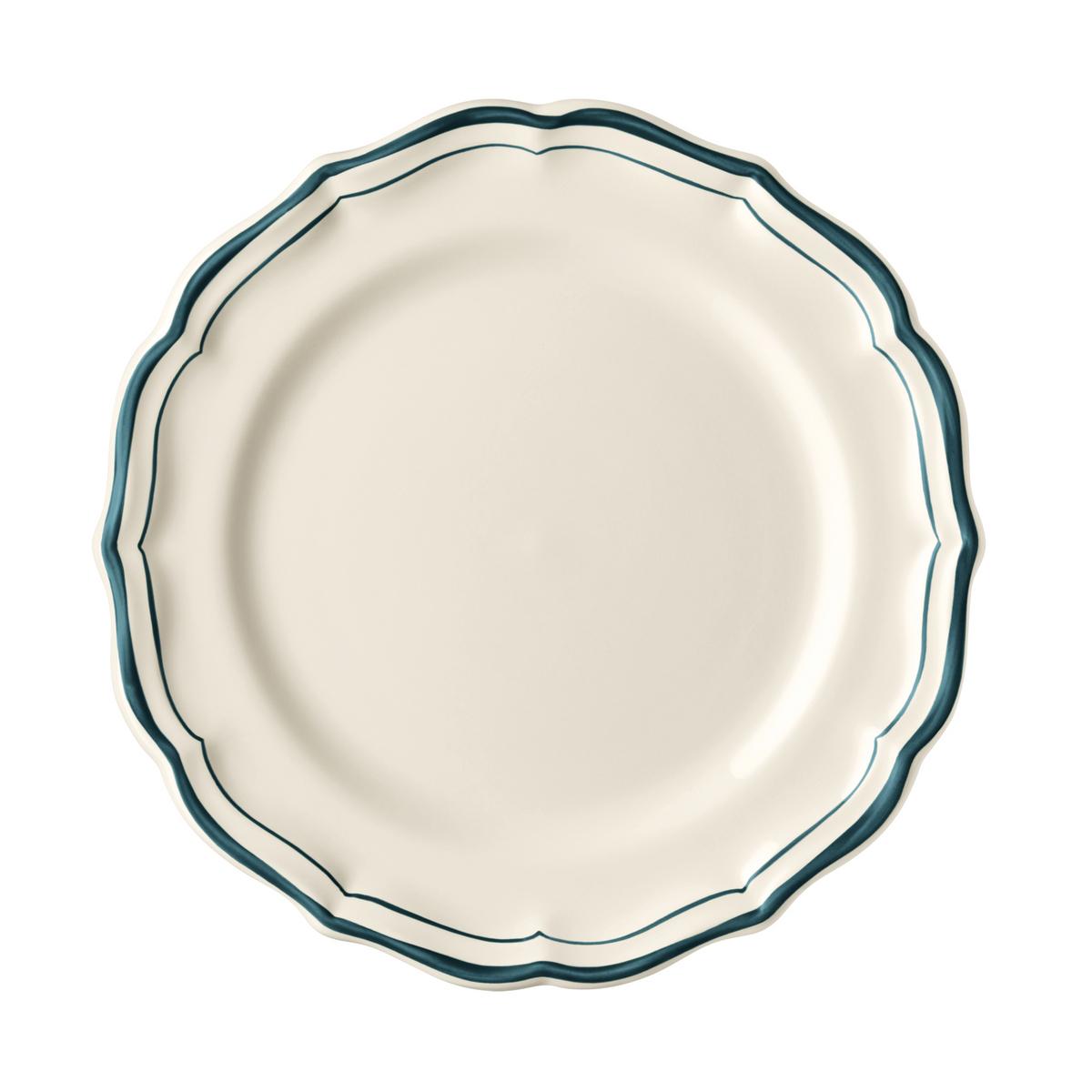 Als Solitär passt das schlichte und elegante Service "Filets Acapulco" zu einem klassischen Interieur ebenso wie zu einem Ambiente im Landhausstil. Mit seinem Rand in leuchtendem Petrol ist das Tafelservice von Gien zudem perfekt für eine sommerliche Tafel im maritimen Stil.