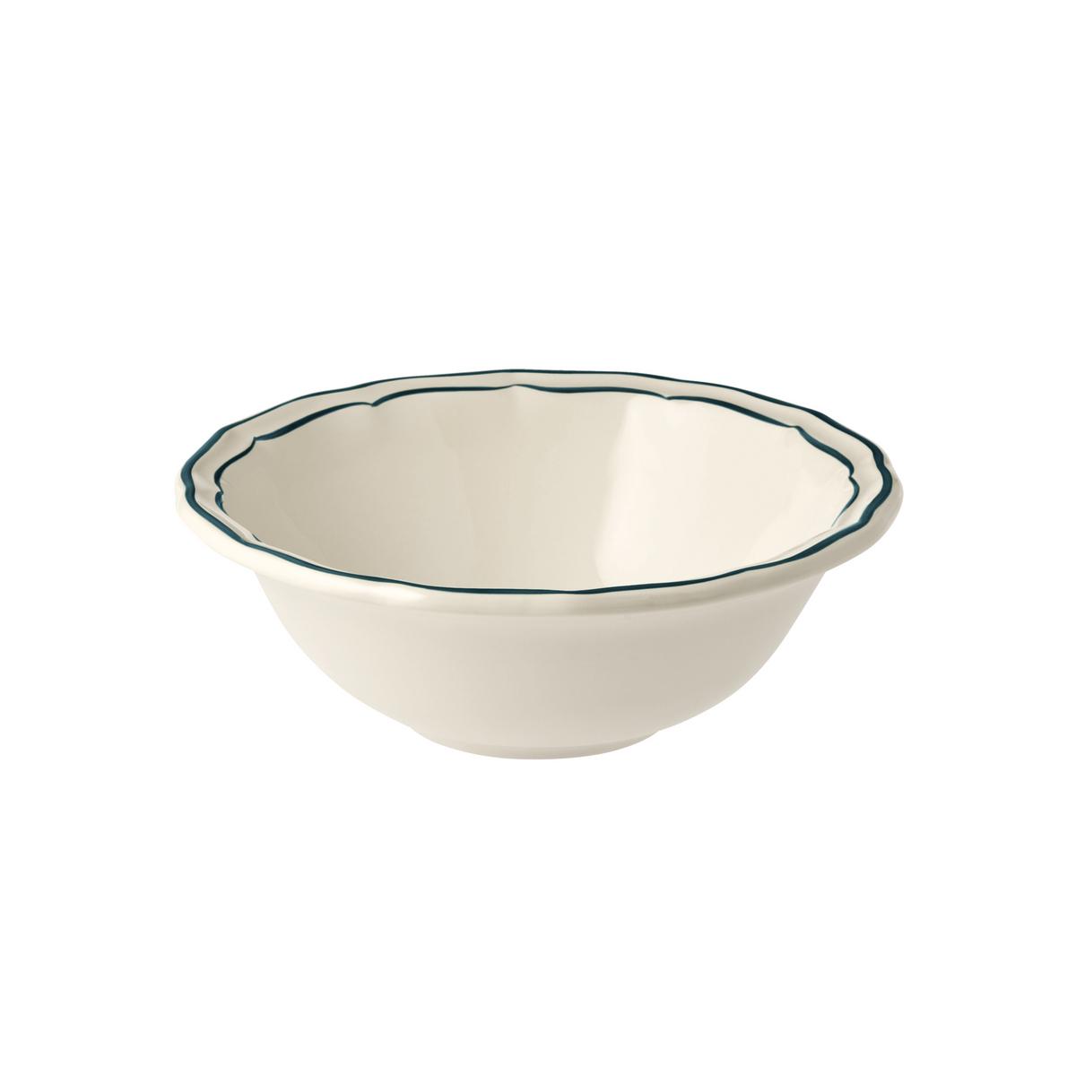 Als Solitär passt das schlichte und elegante Service "Filets Acapulco" zu einem klassischen Interieur ebenso wie zu einem Ambiente im Landhausstil. Mit seinem Rand in leuchtendem Petrol ist das Tafelservice von Gien zudem perfekt für eine sommerliche Tafel im maritimen Stil.