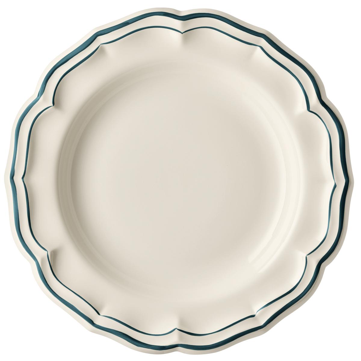 Als Solitär passt das schlichte und elegante Service "Filets Acapulco" zu einem klassischen Interieur ebenso wie zu einem Ambiente im Landhausstil. Mit seinem Rand in leuchtendem Petrol ist das Tafelservice von Gien zudem perfekt für eine sommerliche Tafel im maritimen Stil.