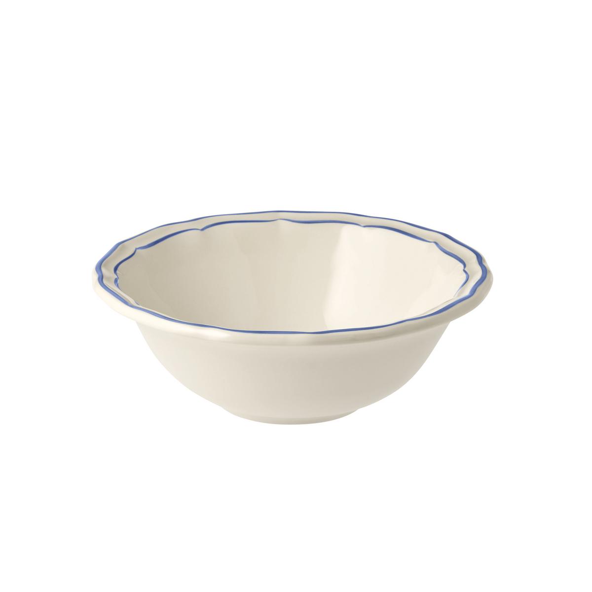 "Filets Bleus" von Gien ist ein ecrufarbenes Service voller Charme, schlicht und doch raffiniert durch den von Hand aufgetragenen blauen Strich, der die Form eines jeden Teils schön zur Geltung bringt und die Eleganz unterstreicht.