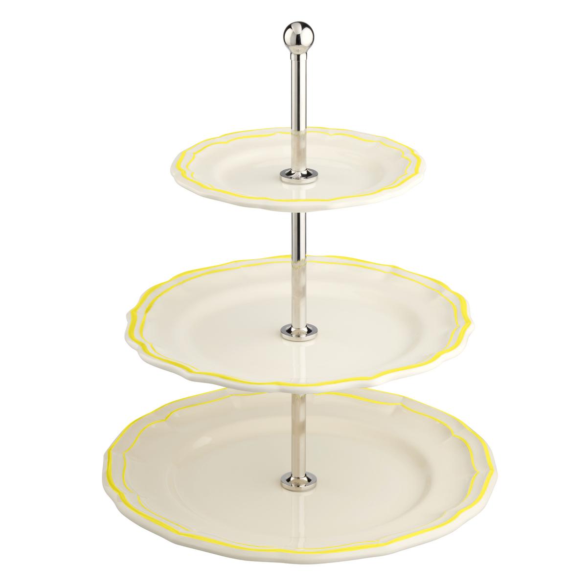 Das Service "Filets Jaune Citron" ist eine neue Farbvariante des berühmten blauen Klassikers "Filets Bleu" aus dem Hause Gien. Die zauberhafte Muschelform des Services aus ecrufarbener Fayence schmücken handgemalte Linien in der Farbe Jaune Citron (zitronengelb). Die zarten per Hand aufgetragenen Pinselstriche machen jedes Stück zu einem Unikat.
