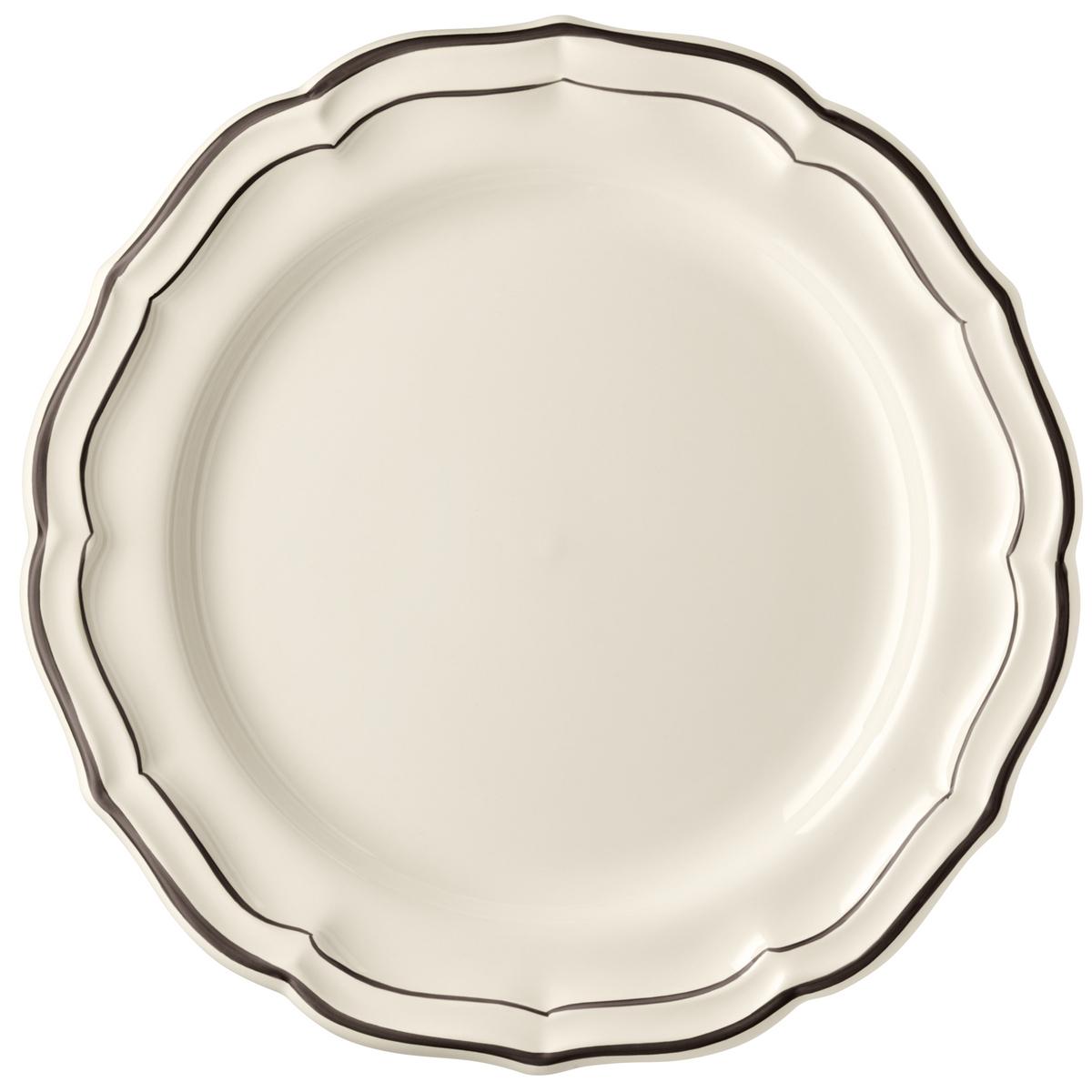 Das Service "Filets Manganese" ist eine neue Farbvariante des berühmten blauen Klassikers aus dem Hause Gien. Die zauberhafte Muschelform des Services aus ecrufarbener Fayence schmücken handgemalte Linien in der Farbe Manganese (anthrazit/schwarz).