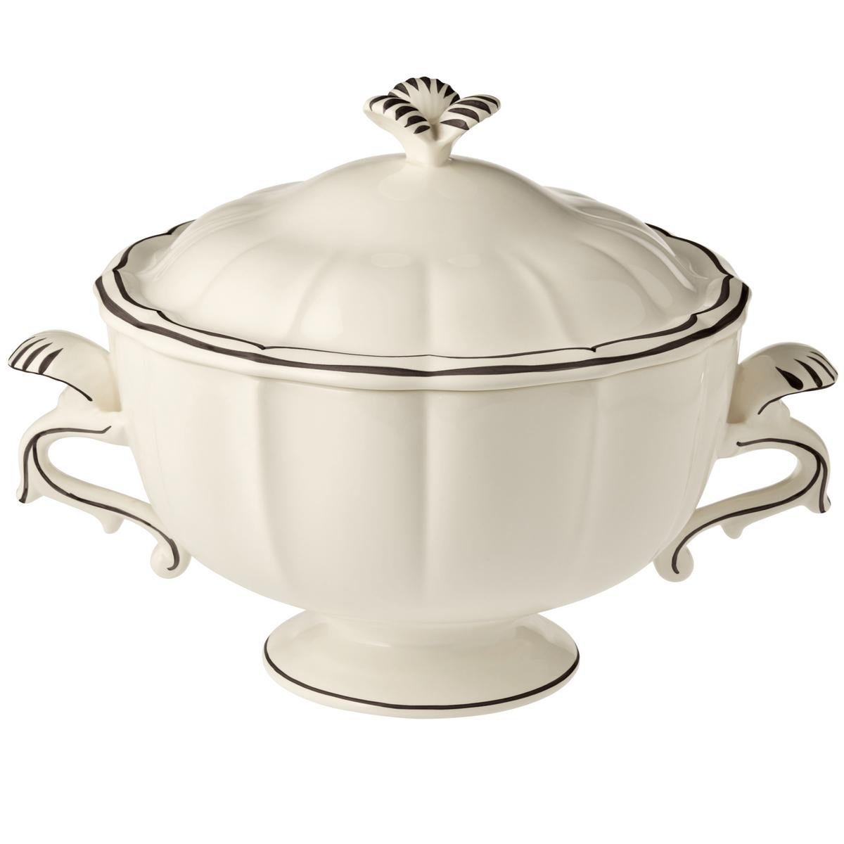 Das Service "Filets Manganese" ist eine neue Farbvariante des berühmten blauen Klassikers aus dem Hause Gien. Die zauberhafte Muschelform des Services aus ecrufarbener Fayence schmücken handgemalte Linien in der Farbe Manganese (anthrazit/schwarz).