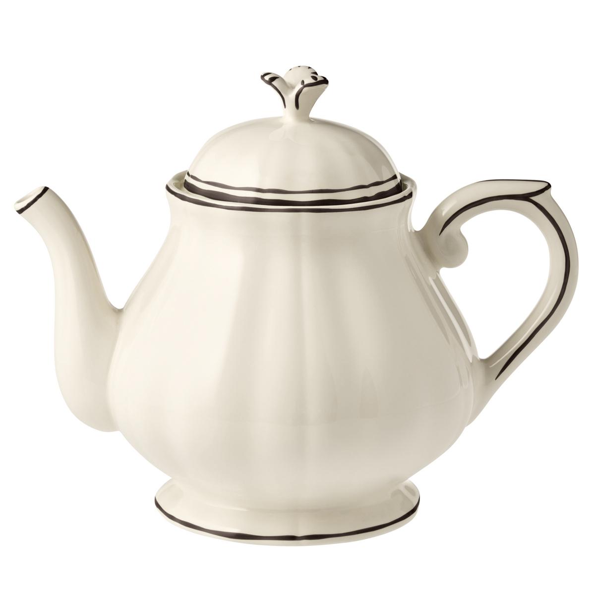 Das Service "Filets Manganese" ist eine neue Farbvariante des berühmten blauen Klassikers aus dem Hause Gien. Die zauberhafte Muschelform des Services aus ecrufarbener Fayence schmücken handgemalte Linien in der Farbe Manganese (anthrazit/schwarz).