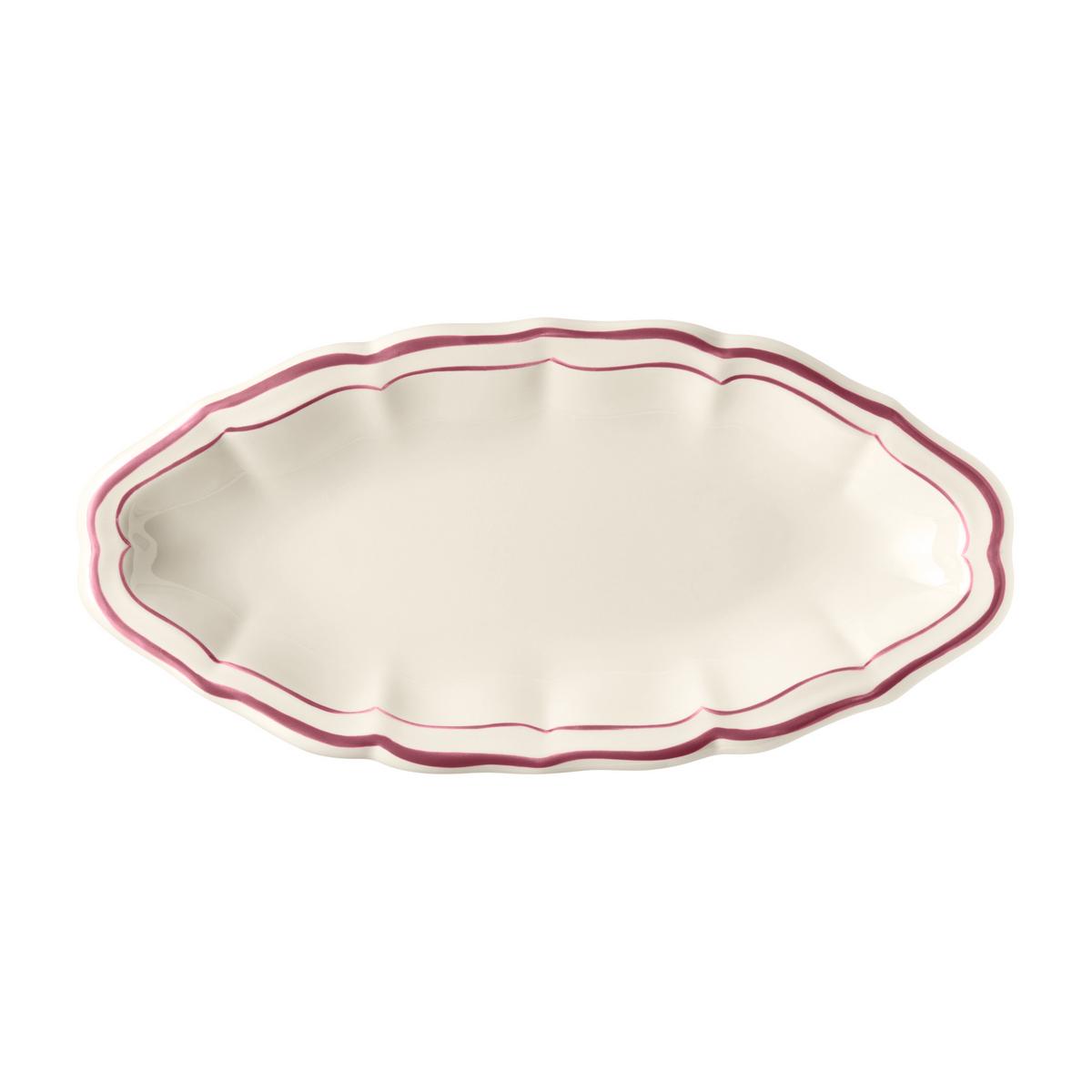 Das Service "Filets Pivoine" ist eine neue Farbvariante des berühmten blauen Klassikers "Filets Bleu" aus dem Hause Gien. Die zauberhafte Muschelform des Services aus ecrufarbener Fayence schmücken handgemalte Linien in der Farbe Pivoine (rosa/pink). Dieser Farbton ist anders als die frühere Farbe "Filets Rose" von Gien. "Filets Rose" wird leider nicht mehr produziert. Die zarten per Hand aufgetragenen Pinselstriche machen jedes Stück zu einem Unikat.