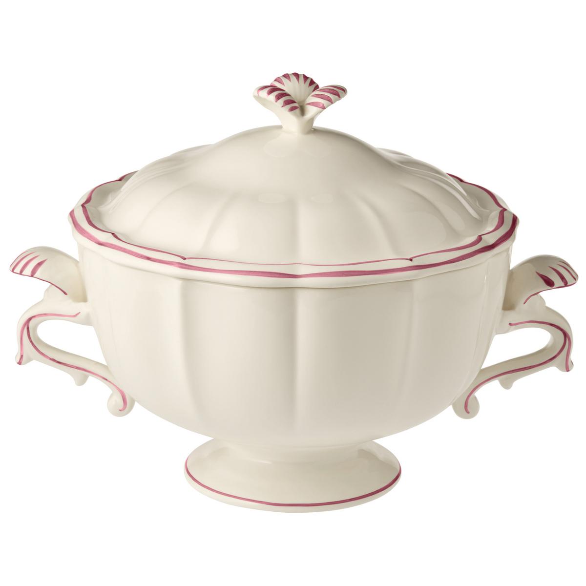 Das Service "Filets Pivoine" ist eine neue Farbvariante des berühmten blauen Klassikers "Filets Bleu" aus dem Hause Gien. Die zauberhafte Muschelform des Services aus ecrufarbener Fayence schmücken handgemalte Linien in der Farbe Pivoine (rosa/pink). Dieser Farbton ist anders als die frühere Farbe "Filets Rose" von Gien. "Filets Rose" wird leider nicht mehr produziert. Die zarten per Hand aufgetragenen Pinselstriche machen jedes Stück zu einem Unikat.