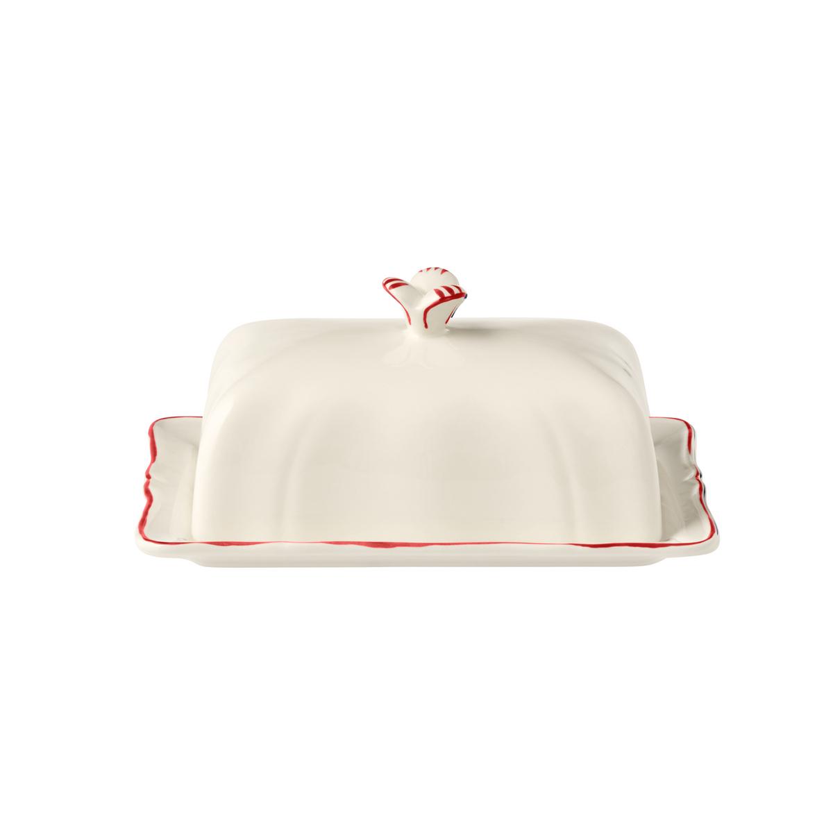 Das Service "Filets Rouge" ist eine neue Farbvariante des berühmten blauen Klassikers aus dem Hause Gien. Die zauberhafte Muschelform des Services aus ecrufarbener Fayence schmücken handgemalte Linien in der Farbe Rot.