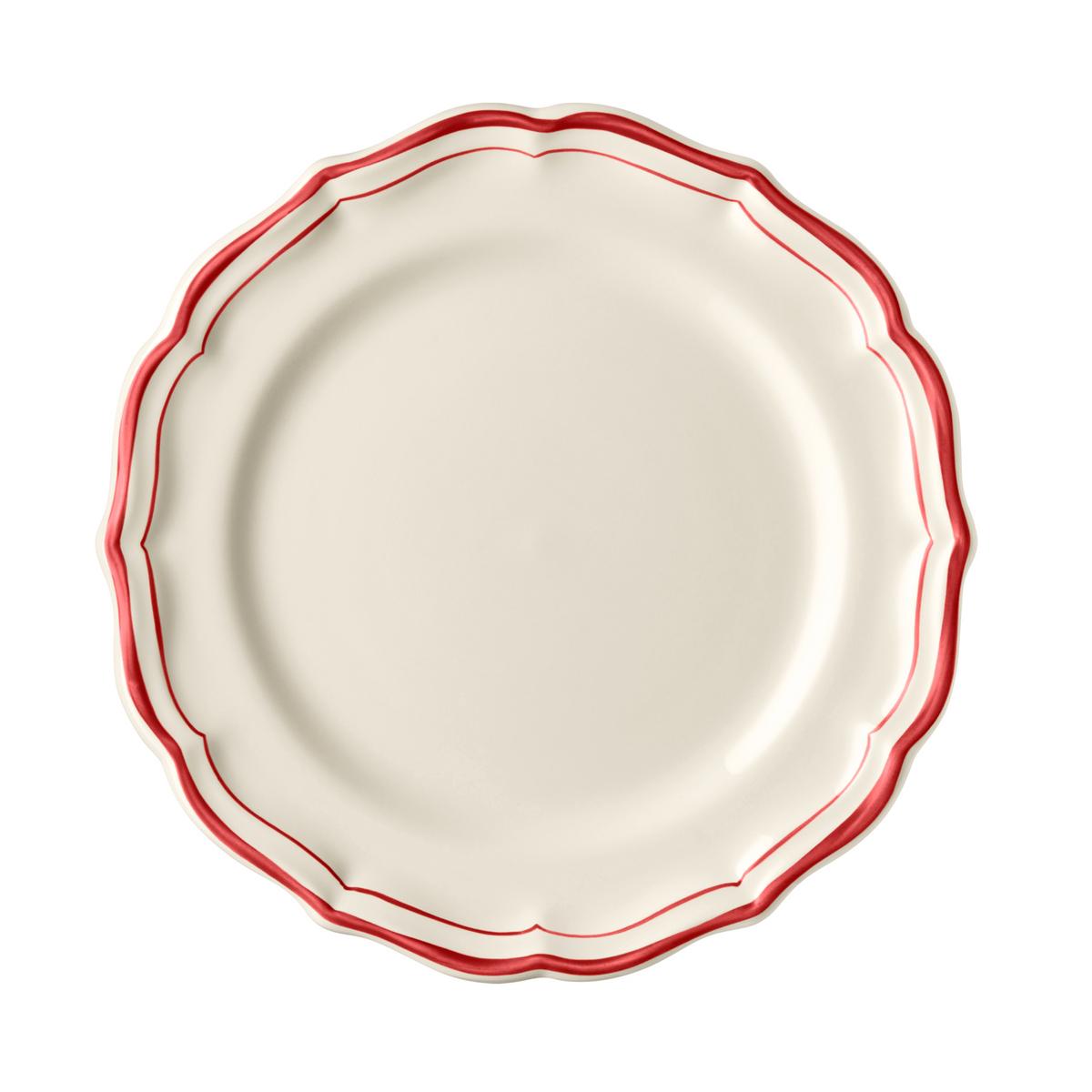 Das Service "Filets Rouge" ist eine neue Farbvariante des berühmten blauen Klassikers aus dem Hause Gien. Die zauberhafte Muschelform des Services aus ecrufarbener Fayence schmücken handgemalte Linien in der Farbe Rot.