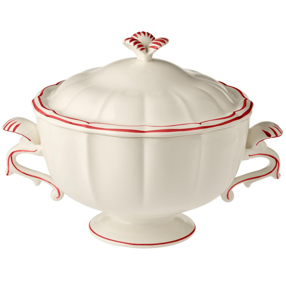 Das Service "Filets Rouge" ist eine neue Farbvariante des berühmten blauen Klassikers aus dem Hause Gien. Die zauberhafte Muschelform des Services aus ecrufarbener Fayence schmücken handgemalte Linien in der Farbe Rot.