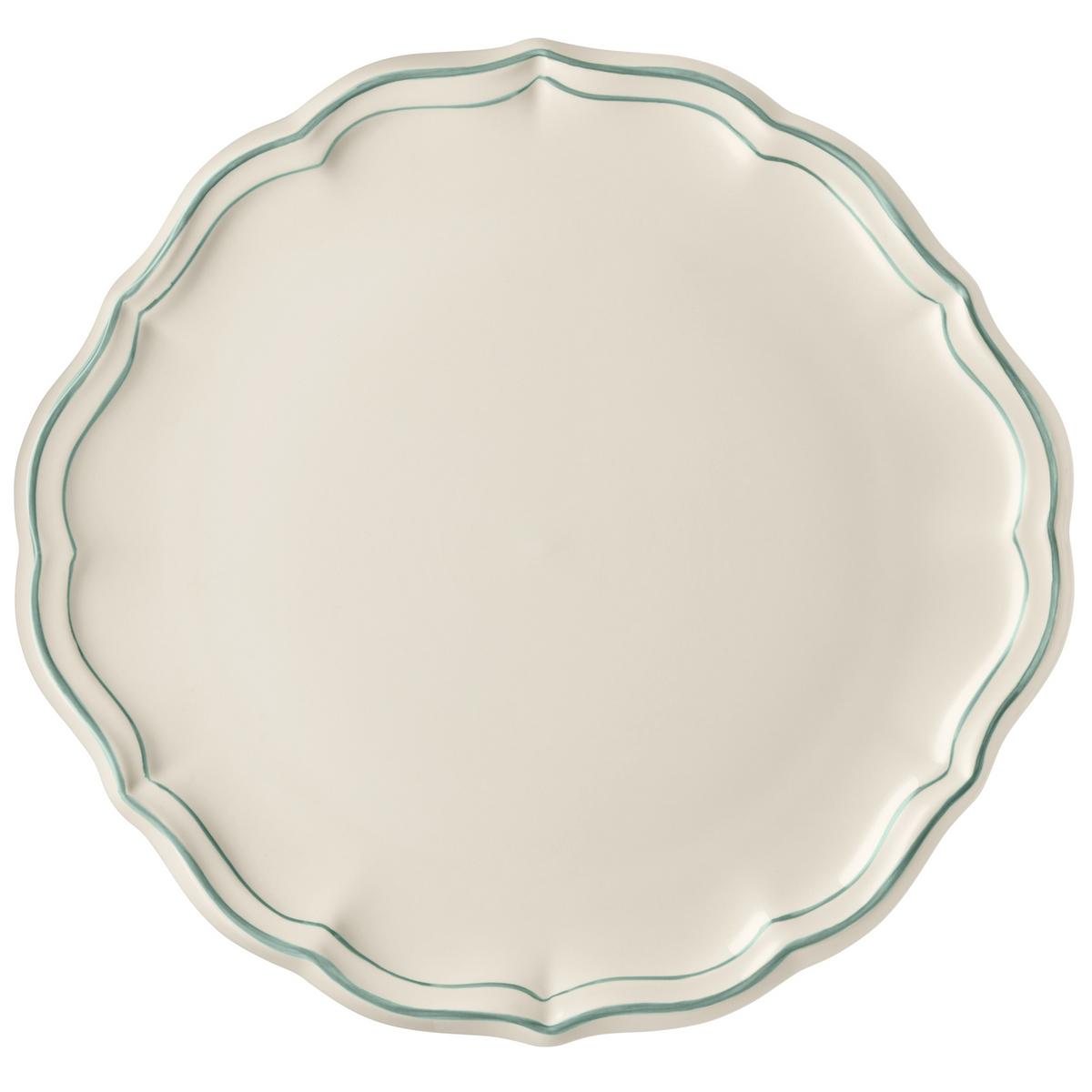 Das Service "Filets Seladon" ist eine neue Farbvariante des berühmten blauen Klassikers "Filets Bleu" aus dem Hause Gien. Die zauberhafte Muschelform des Services aus ecrufarbener Fayence schmücken handgemalte Linien in der Farbe Seladon (türkis/blaugrün). Die zarten per Hand aufgetragenen Pinselstriche machen jedes Stück zu einem Unikat.