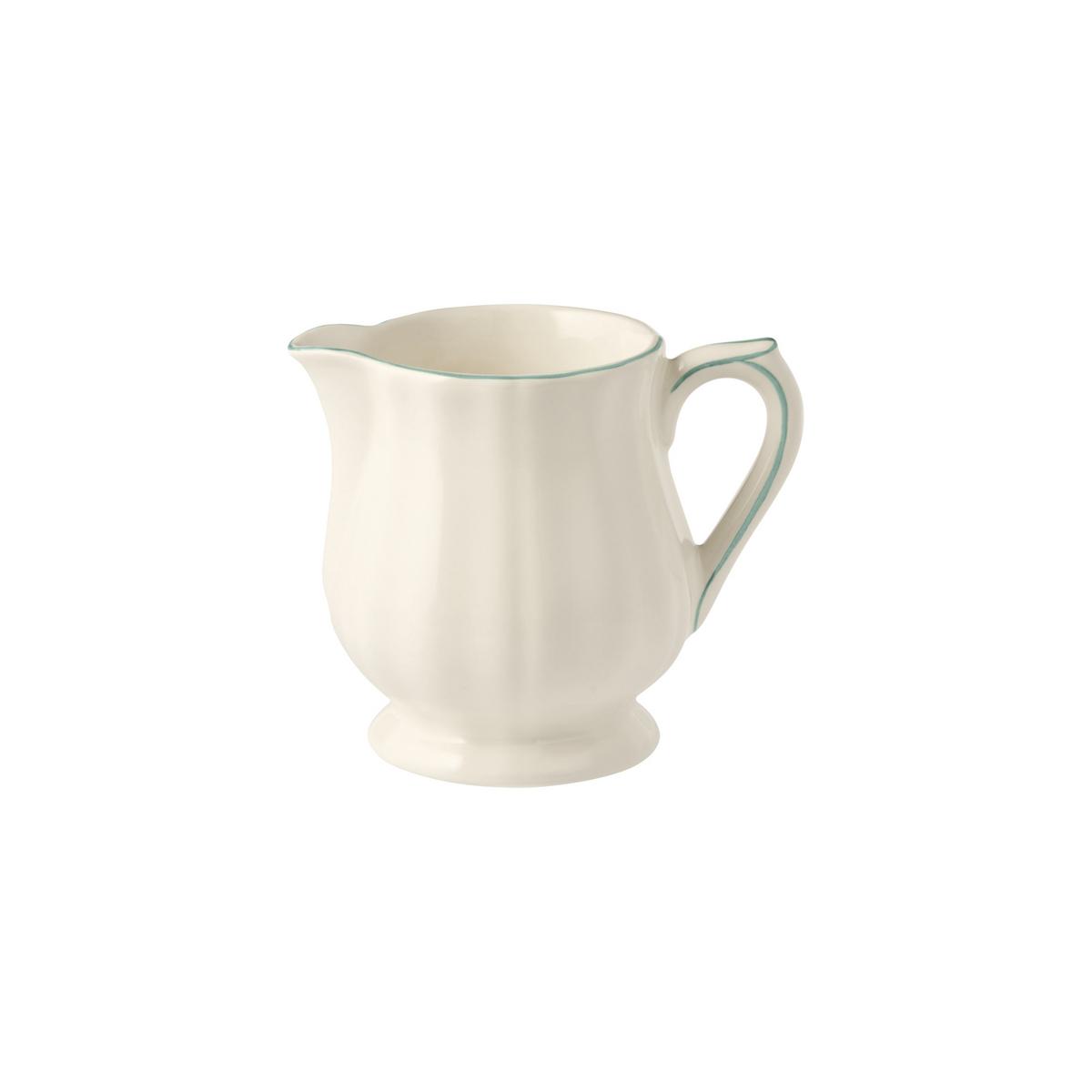 Das Service "Filets Seladon" ist eine neue Farbvariante des berühmten blauen Klassikers "Filets Bleu" aus dem Hause Gien. Die zauberhafte Muschelform des Services aus ecrufarbener Fayence schmücken handgemalte Linien in der Farbe Seladon (türkis/blaugrün). Die zarten per Hand aufgetragenen Pinselstriche machen jedes Stück zu einem Unikat.