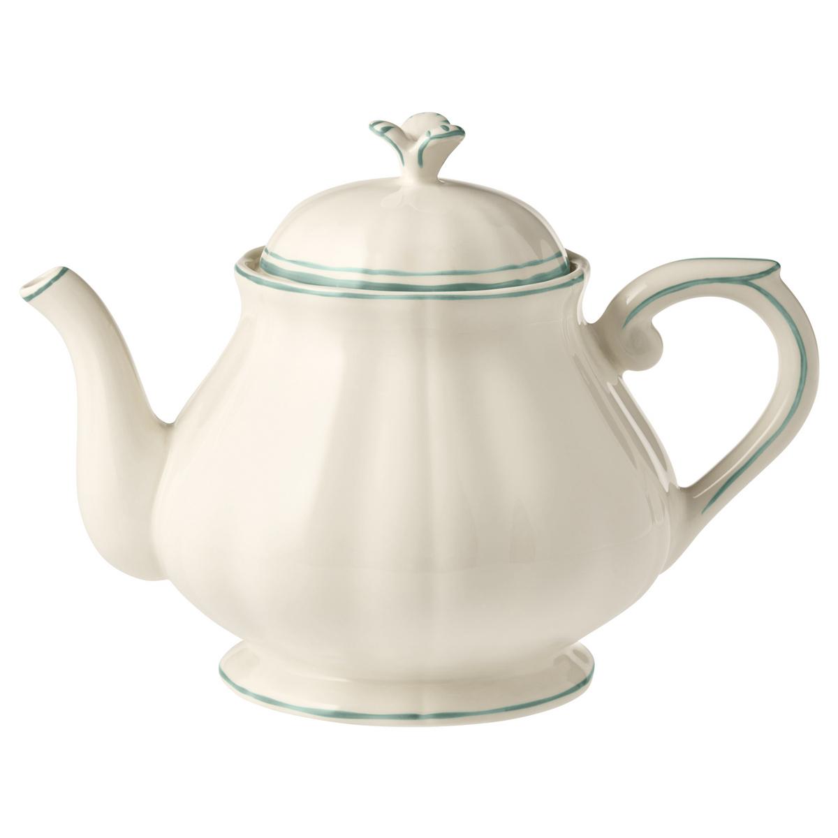 Das Service "Filets Seladon" ist eine neue Farbvariante des berühmten blauen Klassikers "Filets Bleu" aus dem Hause Gien. Die zauberhafte Muschelform des Services aus ecrufarbener Fayence schmücken handgemalte Linien in der Farbe Seladon (türkis/blaugrün). Die zarten per Hand aufgetragenen Pinselstriche machen jedes Stück zu einem Unikat.