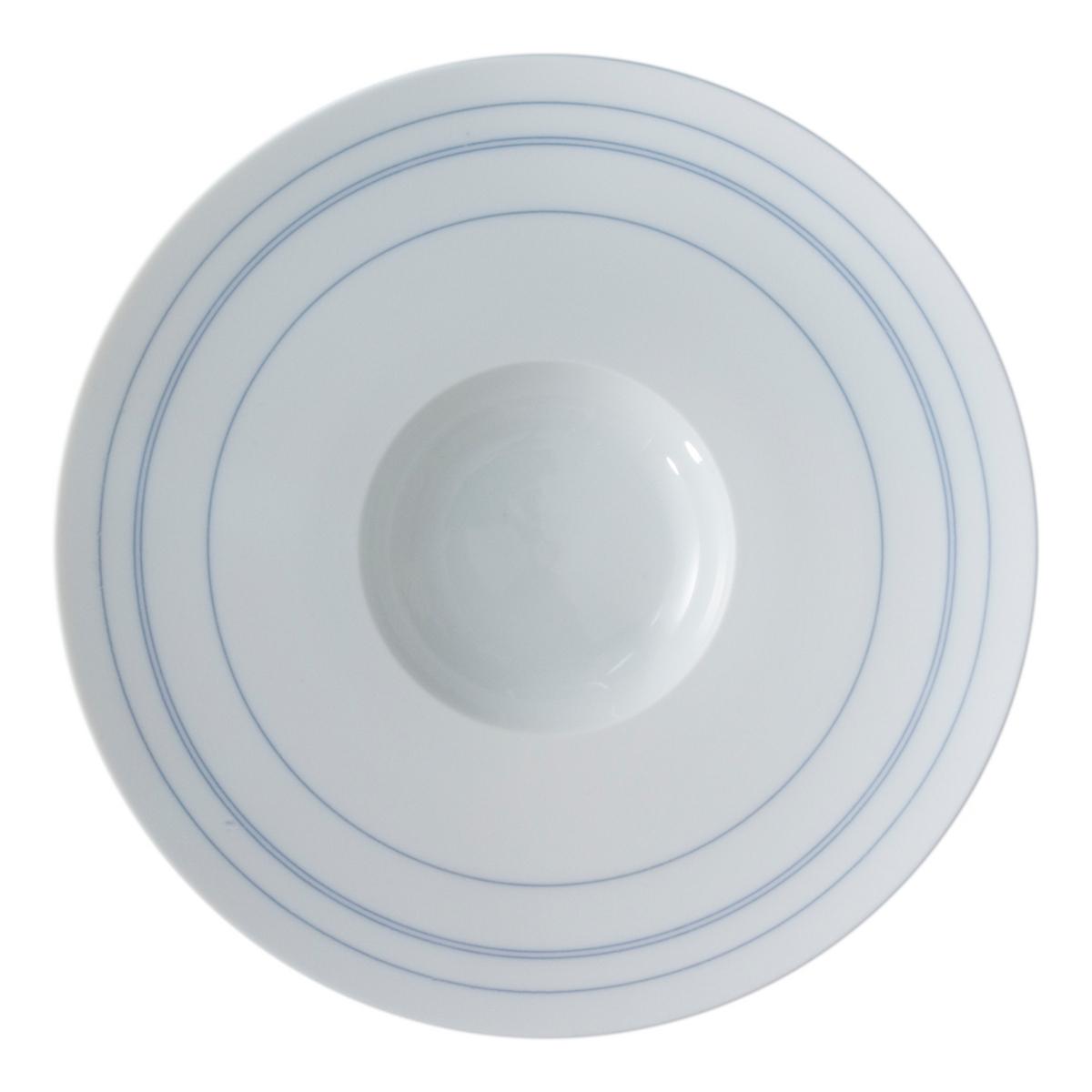 Die Ränder der Teller sind aus mattem, samtig weich geschliffenem Biskuit-Porzellan, die Spiegel sind glasiert.