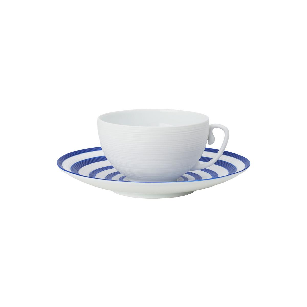 "Hémisphère gestreift, Bleu Royal" Teetasse, Tasse weiß mit Unterteller "Hémisphère gestreift, Bleu Royal" von J.L Coquet
