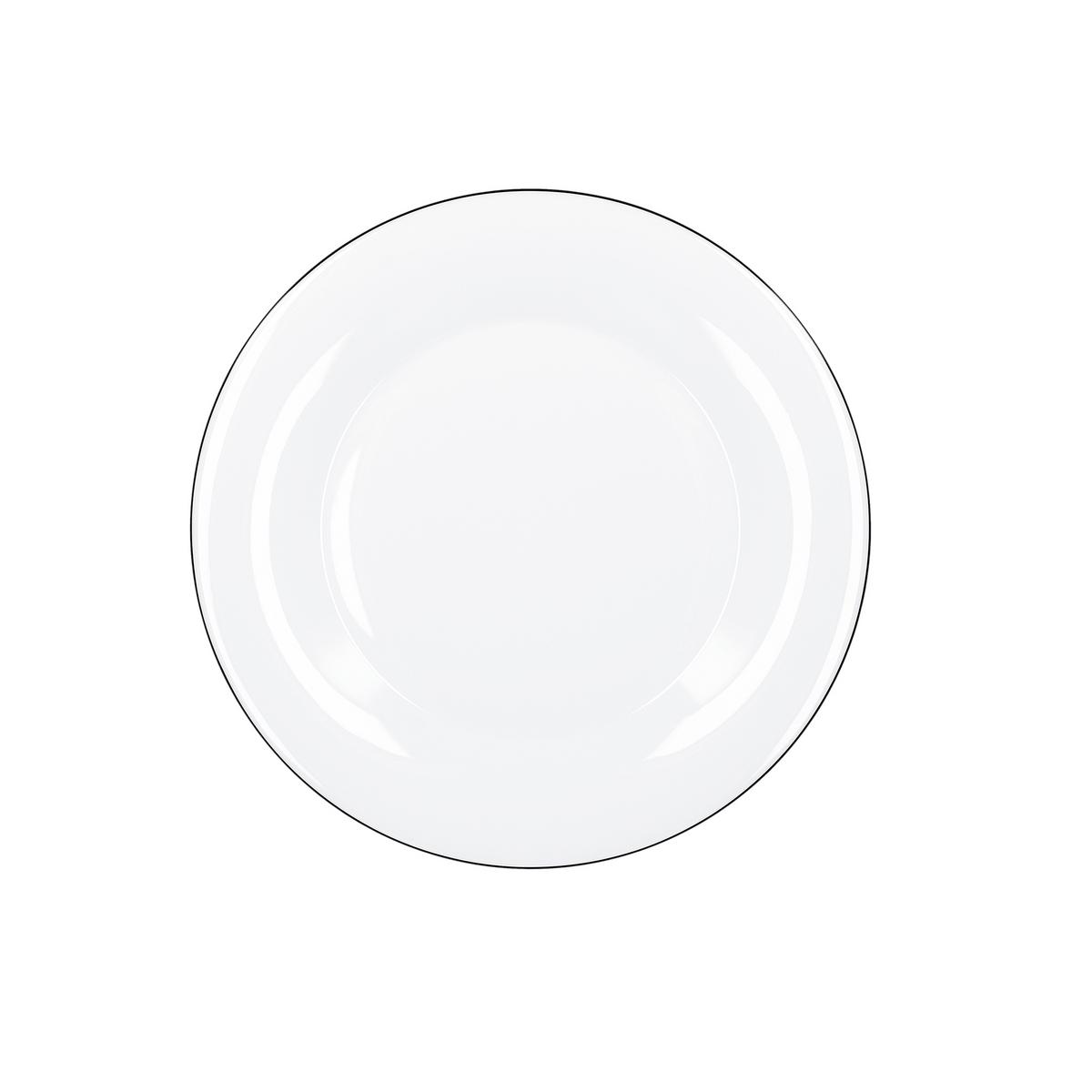 Das weiße Porzellanservice "Berlin Canto" von KPM ist mit einem schwarzen, von Hand aufgetragenen Rand dekoriert.