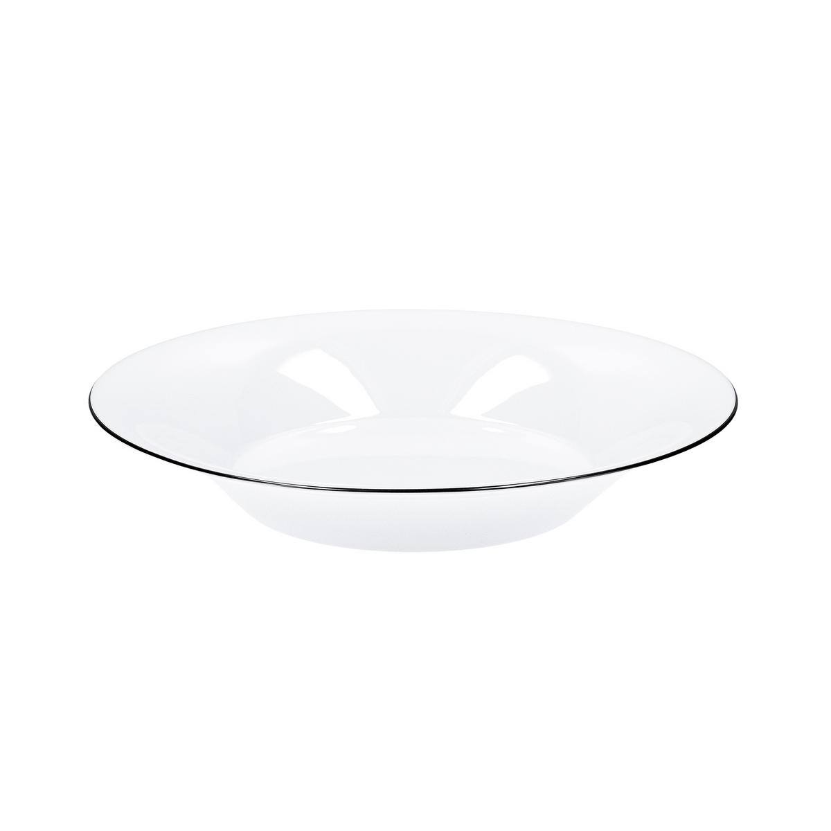 Das weiße Porzellanservice "Berlin Canto" von KPM ist mit einem schwarzen, von Hand aufgetragenen Rand dekoriert.