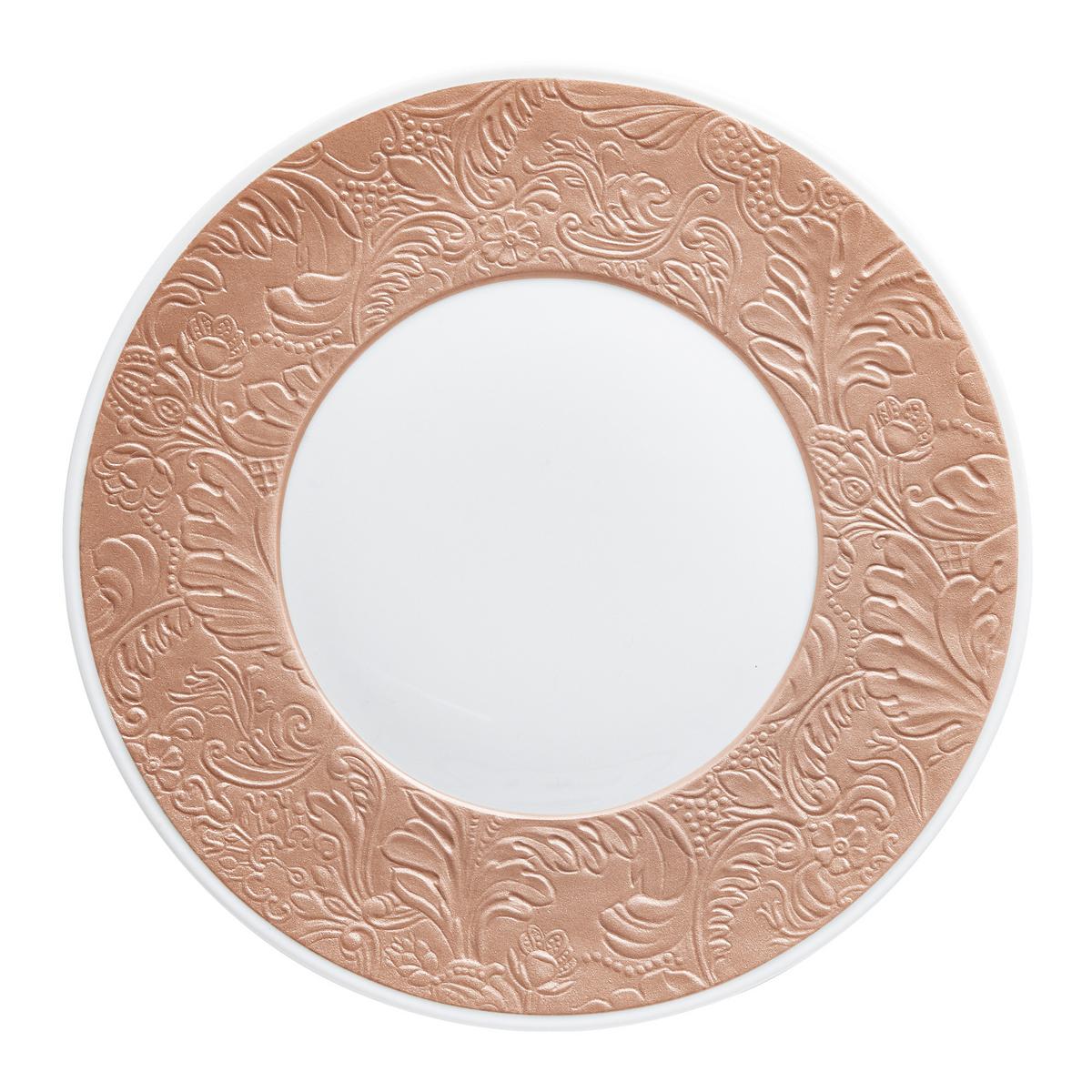Die Kollektion "Italian Renaissance" von Raynaud ziert ein üppiges florales Dekor. Dieses Dekor ist angelehnt an Wandverkleidungen aus dem 19. Jahrhundert, mit denen die bekanntestes Residenzen und Adelshäuser, zum Beispiel der Buckingham Palace, ausgestattet wurden. Raynaud arbeitete mit der englischen Marke Lincrusta® zusammen, die seit 1877 für Wandbespannungen mit opulenten und tiefen Prägungen bekannt ist.
