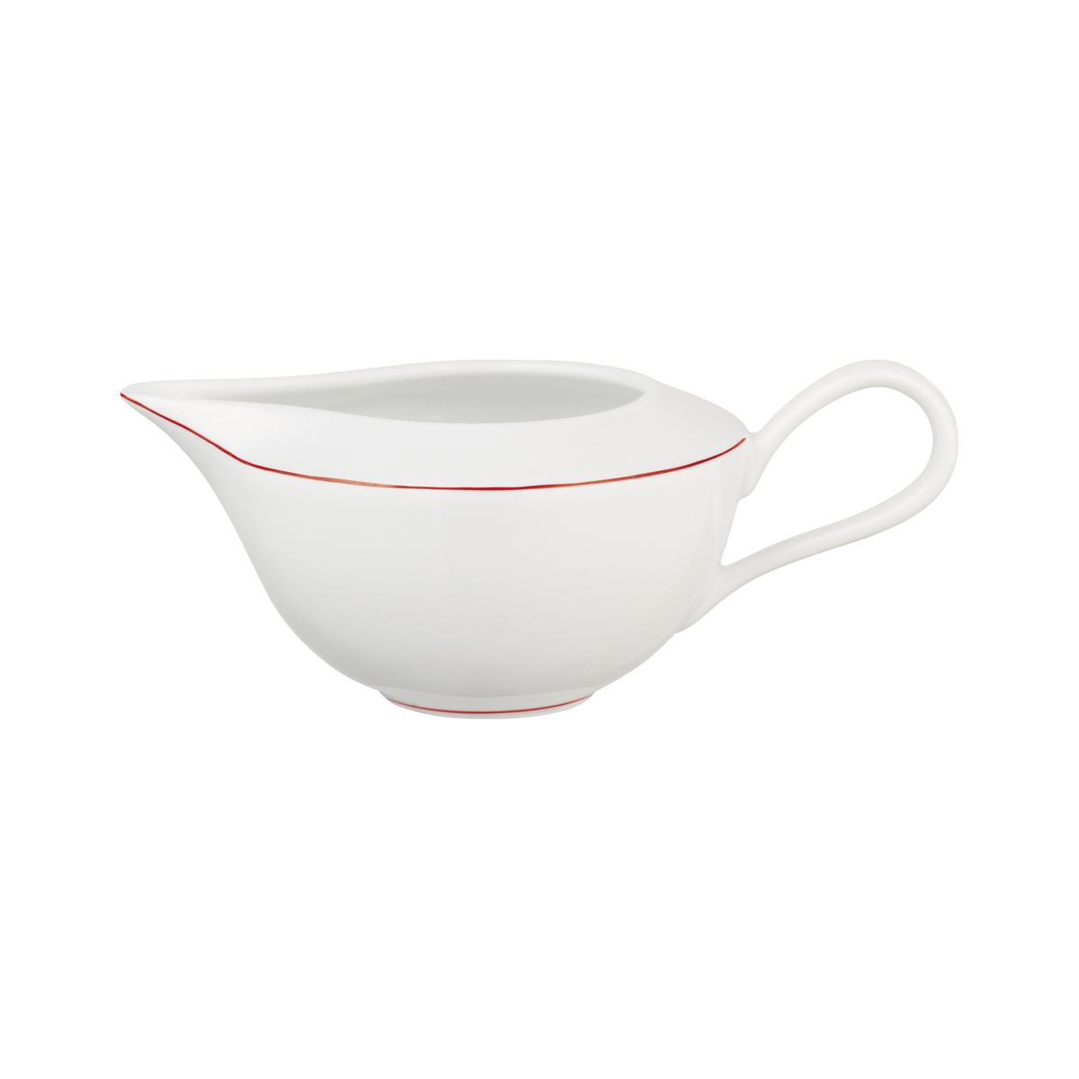 Das Porzellanservice "Monceau Rot" von Raynaud hat die Anmut einer Ballerina: Die Grundformen von Teller bis Tasse sind pur, aber Henkel, Ausgusslippen und Griffknöpfe sind grazil geschwungen. Um die elegante Gestalt des Services "Monceau Rot" von Raynaud zu unterstreichen, ist jedes Element von einer feinen roten Linie umschlungen. Dabei ist der Rotton ebenfalls sehr vornehm, liegt zwischen Karmin- und Purpurrot und passt so auch hervorragend zu anderen Servicen von Raynaud.