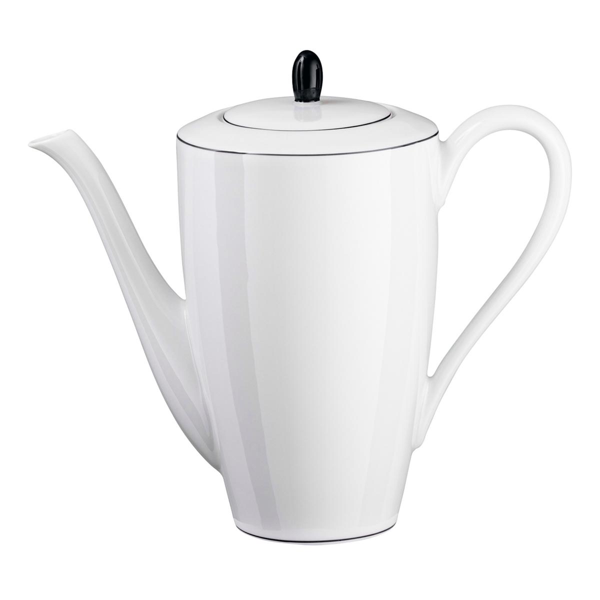 Das Porzellanservice "Monceau Schwarz" von Raynaud hat die Anmut einer Ballerina: Die Grundformen von Teller bis Tasse sind pur, aber Henkel, Ausgusslippen und Griffknöpfe sind grazil geschwungen. Um die elegante Gestalt des Services "Monceau Schwarz" von Raynaud zu unterstreichen, ist jedes Element von einer feinen schwarzen Linie umschlungen.
