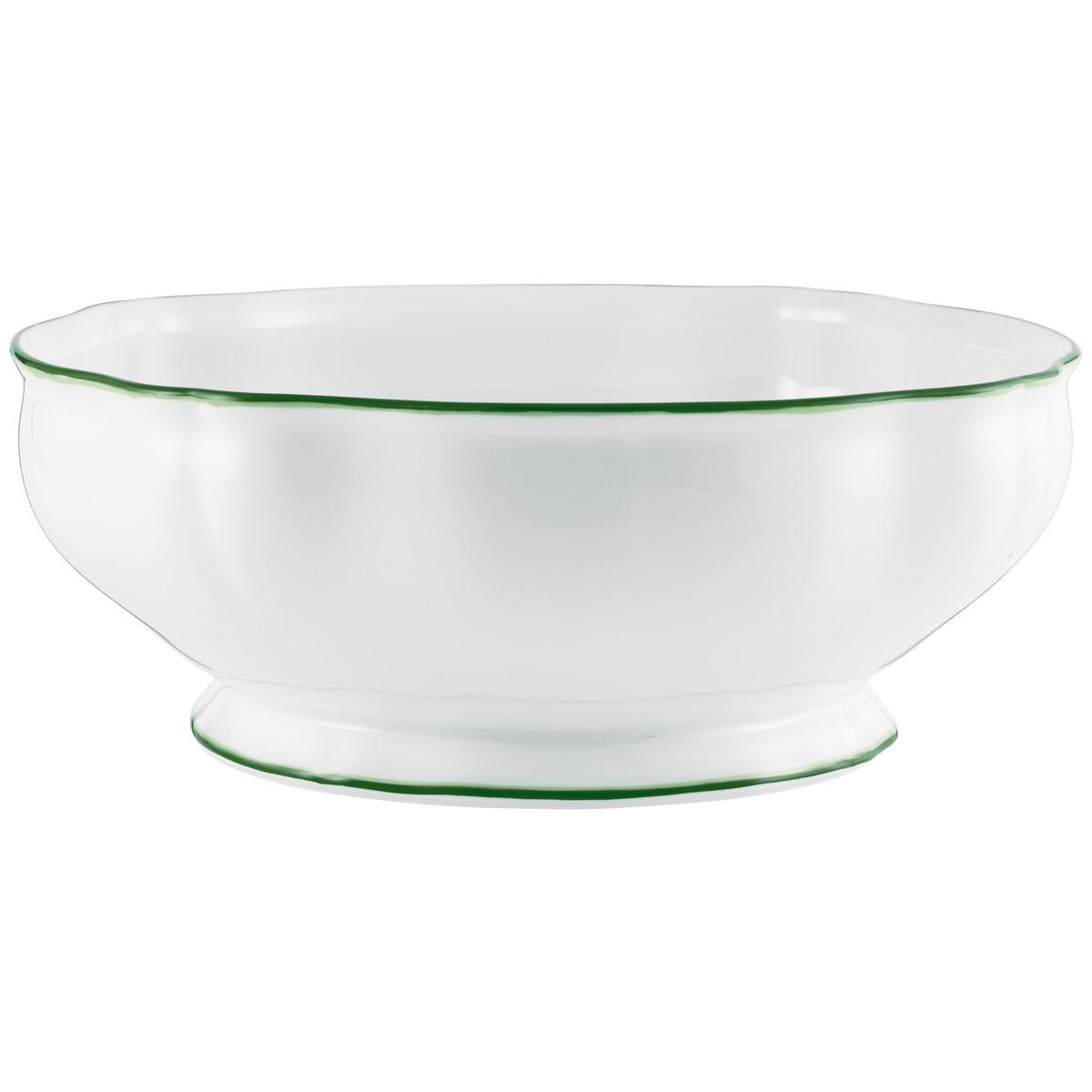 Das "Touraine Filet Vert" von Raynaud glänzt im berühmten Weiß des Limoges-Porzellan. Das "Touraine Filet Vert" von Raynaud ist der Nachfolger der Linie "Villandry". Das Service ist mit einem doppelten handgemalten Rand in Moosgrün und Hellgrün eingerahmt, die Fahne ist ohne das Korbgeflecht-Muster etwas schlichter als der Vorgänger gehalten.