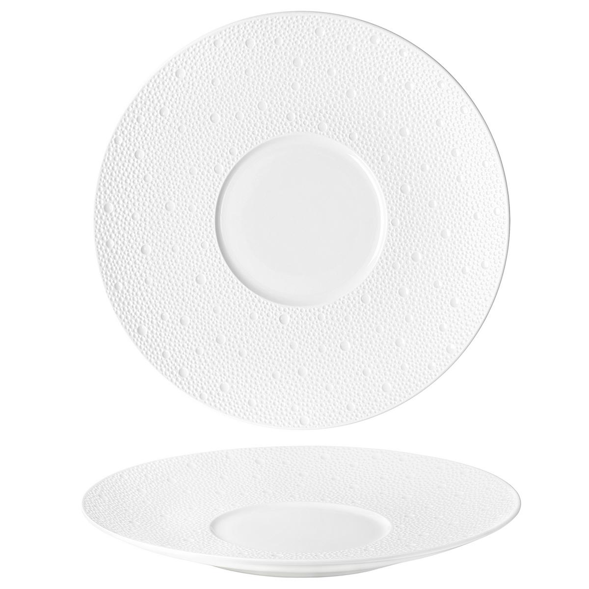 Um diesen raffinierten Effekt auf den extra breiten Tellerrändern zu erzeugen, vereint die französische Manufaktur Bernardaud Porzellankunst mit der raffinierten Technik des Emaillierens.