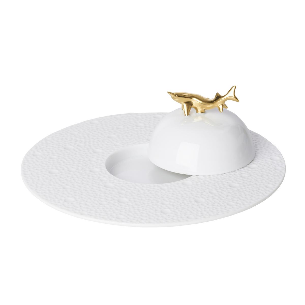 Um diesen raffinierten Effekt auf den extra breiten Tellerrändern zu erzeugen, vereint die französische Manufaktur Bernardaud Porzellankunst mit der raffinierten Technik des Emaillierens.