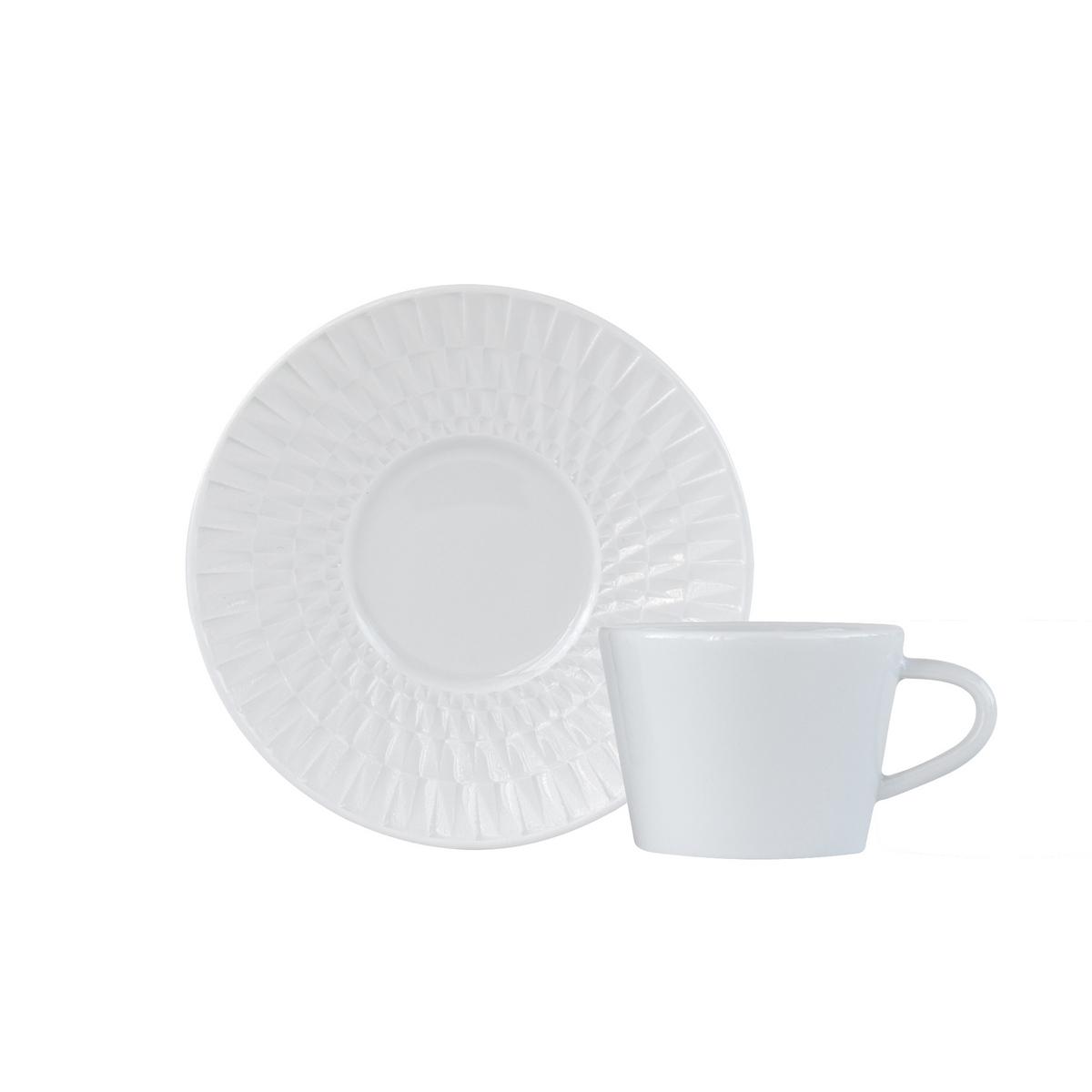 Das Tafelservice "Twist Weiß" von Bernardaud spielt mit strukturierten Oberflächen und bezaubernden Reliefstrukturen. Das filigrane Design ist von vielen verschiedenen Einflüssen inspiriert: die Lichteffekte von japanischen Schirmen aus Reispapier, die Kunst des Origami-Faltens, Flechtmöbel der 50er Jahre sowie den 3D-Grafiken, welche die neuen Technologien bieten. Das Ergebnis ist ein strenges geometrisches Muster welches durch die Drehung seine Strenge verliert und sehr beschwingt wirkt. Das Spiel mit 3D-Effekten verleiht dem weißen Porzellanservice eine lebhafte Ausstrahlung und spielt mit schönen Lichteffekten.