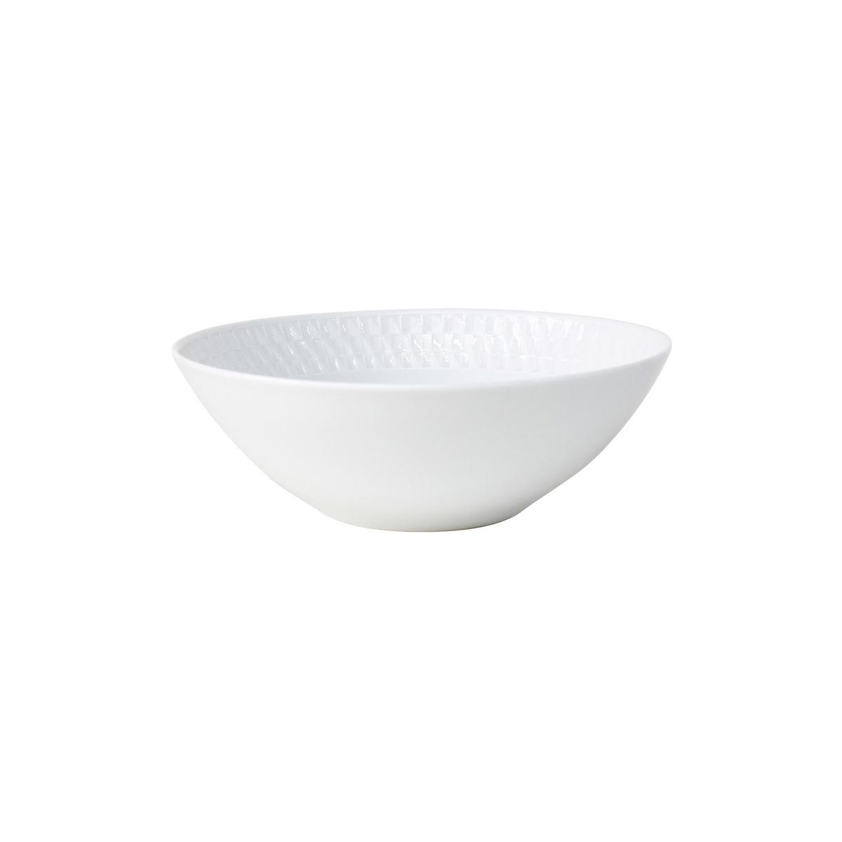 Das Tafelservice "Twist Weiß" von Bernardaud spielt mit strukturierten Oberflächen und bezaubernden Reliefstrukturen. Das filigrane Design ist von vielen verschiedenen Einflüssen inspiriert: die Lichteffekte von japanischen Schirmen aus Reispapier, die Kunst des Origami-Faltens, Flechtmöbel der 50er Jahre sowie den 3D-Grafiken, welche die neuen Technologien bieten. Das Ergebnis ist ein strenges geometrisches Muster welches durch die Drehung seine Strenge verliert und sehr beschwingt wirkt. Das Spiel mit 3D-Effekten verleiht dem weißen Porzellanservice eine lebhafte Ausstrahlung und spielt mit schönen Lichteffekten.