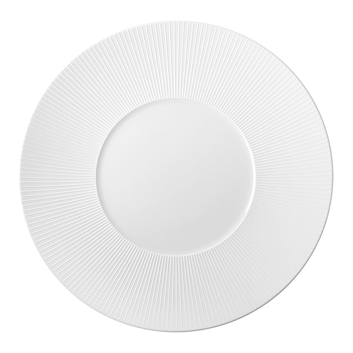 Raffiniertes Porzellan mit Strahlkraft – "Bolero Weiß" von J.L Coquet hat eine auffallende Präsens und Ausstrahlung trotz ihrer schlichten Formen. Feine strahlenförmige Gravuren sind kennzeichnend für das Tafelservice aus feinstem Limoges-Porzellan. Die besondere Oberflächenstruktur von "Bolero Weiß" ist auch ein haptisches Erlebnis. Die satinierten Tellerränder stehen in Kontrast zu den glasierten Tellerspiegeln. Dieser Kontrast verleiht dem eleganten Tafelservice eine organische Wärme.